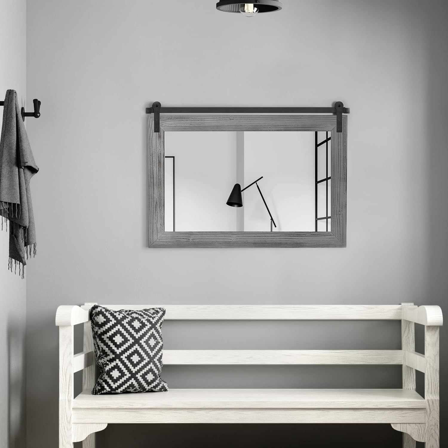COGOOD Farmhouse Barn Door Mirror - 25" x 18" Rustic Wood Framed Decrative Mirror for Bathroom, Living Room, Entryway Wall Decor (Grey)