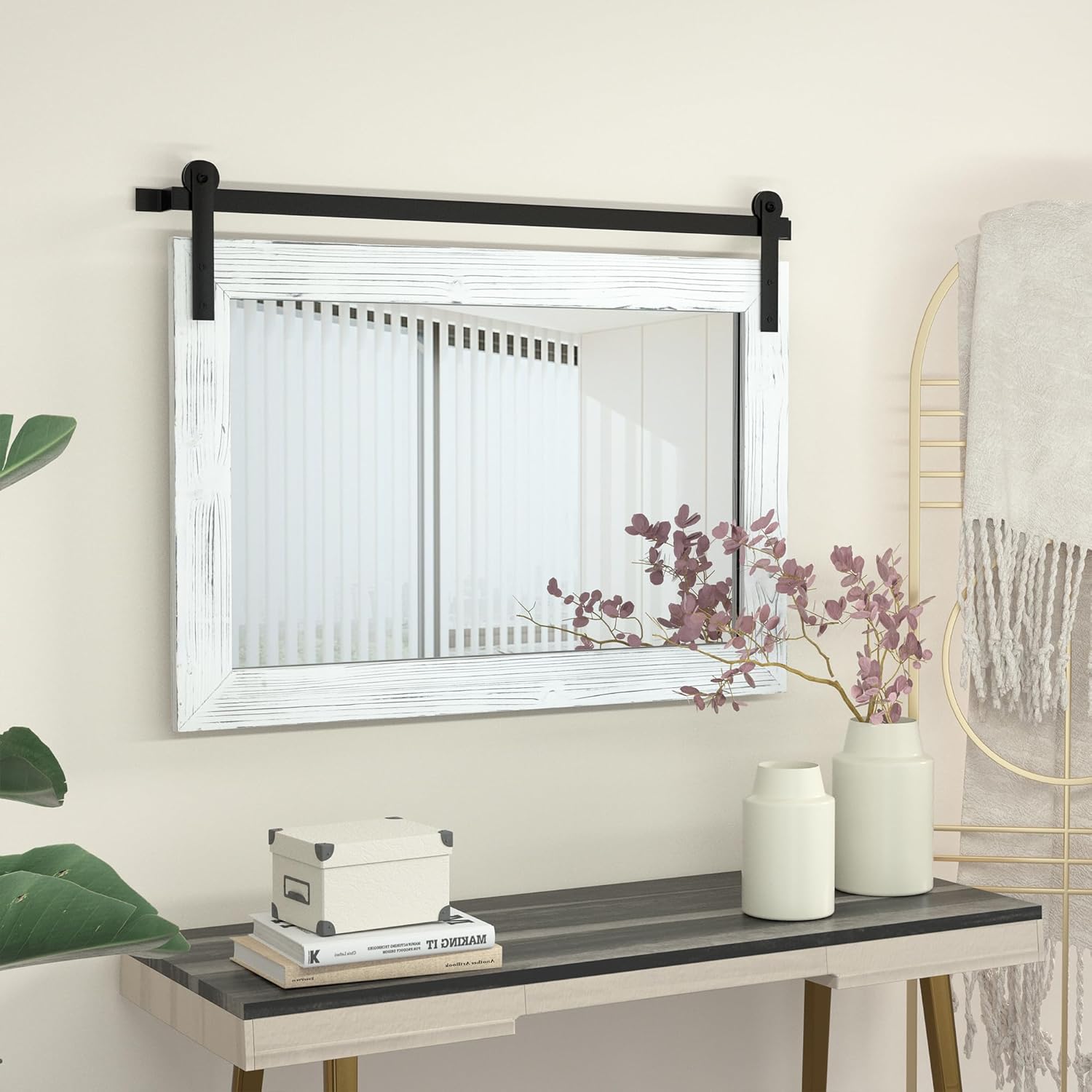 COGOOD Farmhouse Bathroom Mirror - 41" x 30" Rustic Barn Door Mirror for Living Room, Entryway, Bedroom, Vanity Wall Decor (White)