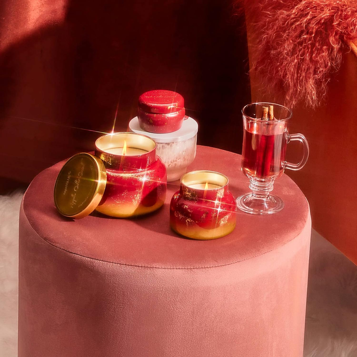 - Apple Cider Social Scented Candles: Capri Blue's sweet apple treat sets the autumn vibes with a punch of spice. These holiday candles have notes of crisp apple, cinnamon, juicy pear with grated clove and fresh nutmeg. Cozy, warm and simply delish!