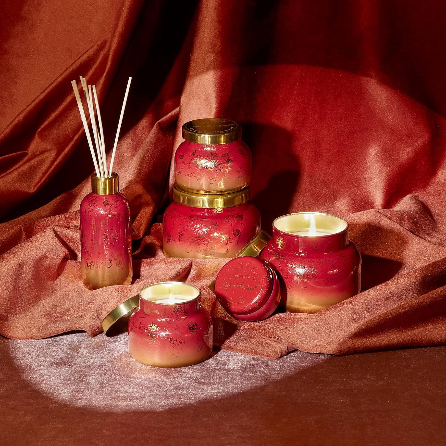 Capri Blue Glimmer Petite Signature Jar Candle - Apple Cider Social Scented Candle with Ombre Glass Candle Holder - Luxury Aromatherapy Candle - Red and Gold (8 oz)