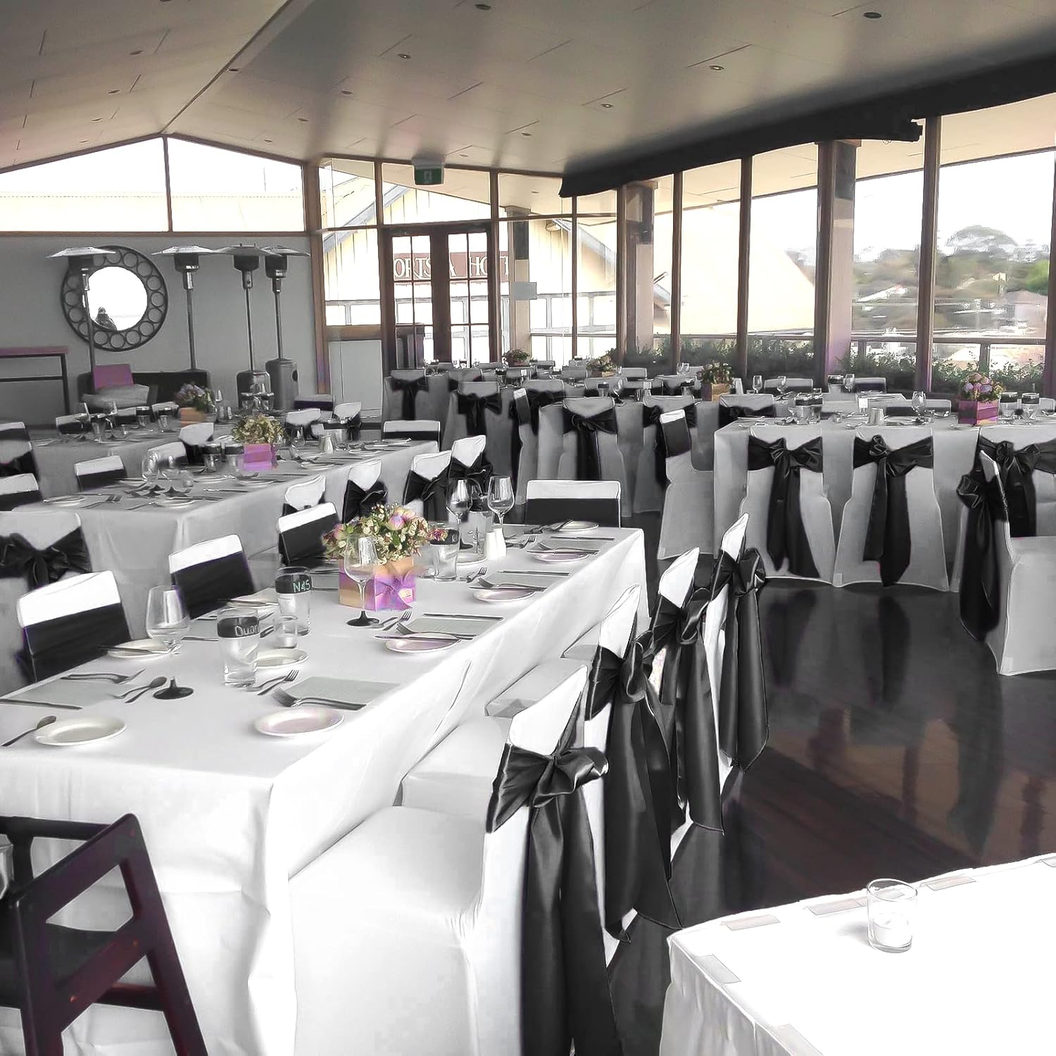 fani 120 PCS Black Satin Chair Sashes Bows Universal Chair Cover for Wedding Reception Restaurant Event Decoration Banquet,Party,Hotel Event Decorations (7 x 108 inch)