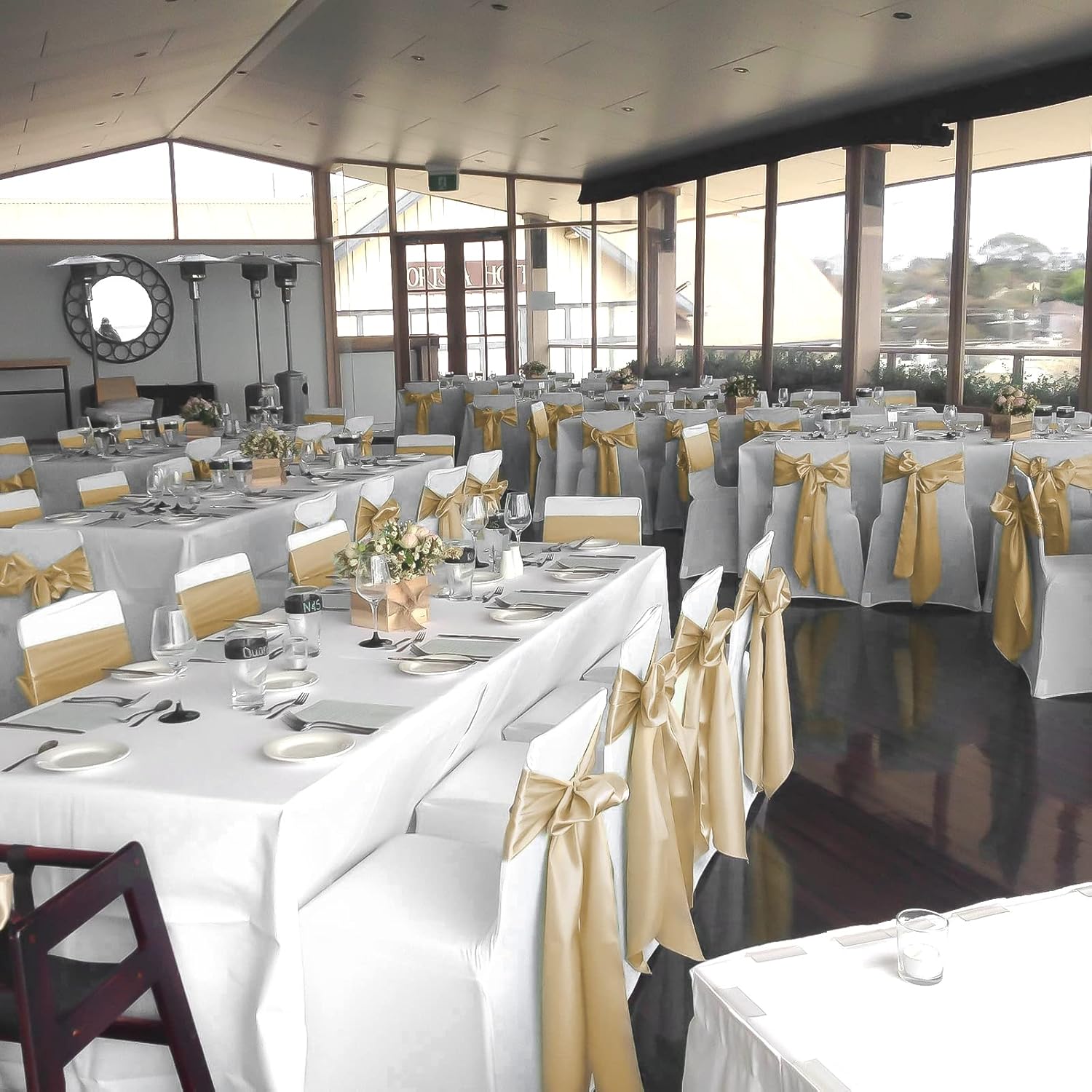 fani 120 PCS Champagne Satin Chair Sashes Bows Universal Chair Cover for Wedding Reception Restaurant Event Decoration Banquet,Party,Hotel Event Decorations (7 x 108 inch)