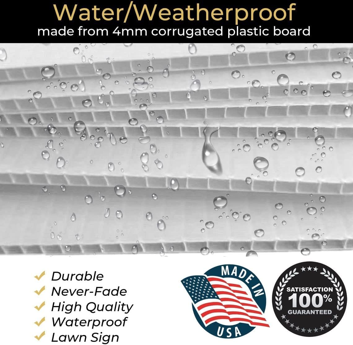 - Weatherproof & fade-resistant, 4 mm corrugated plastic