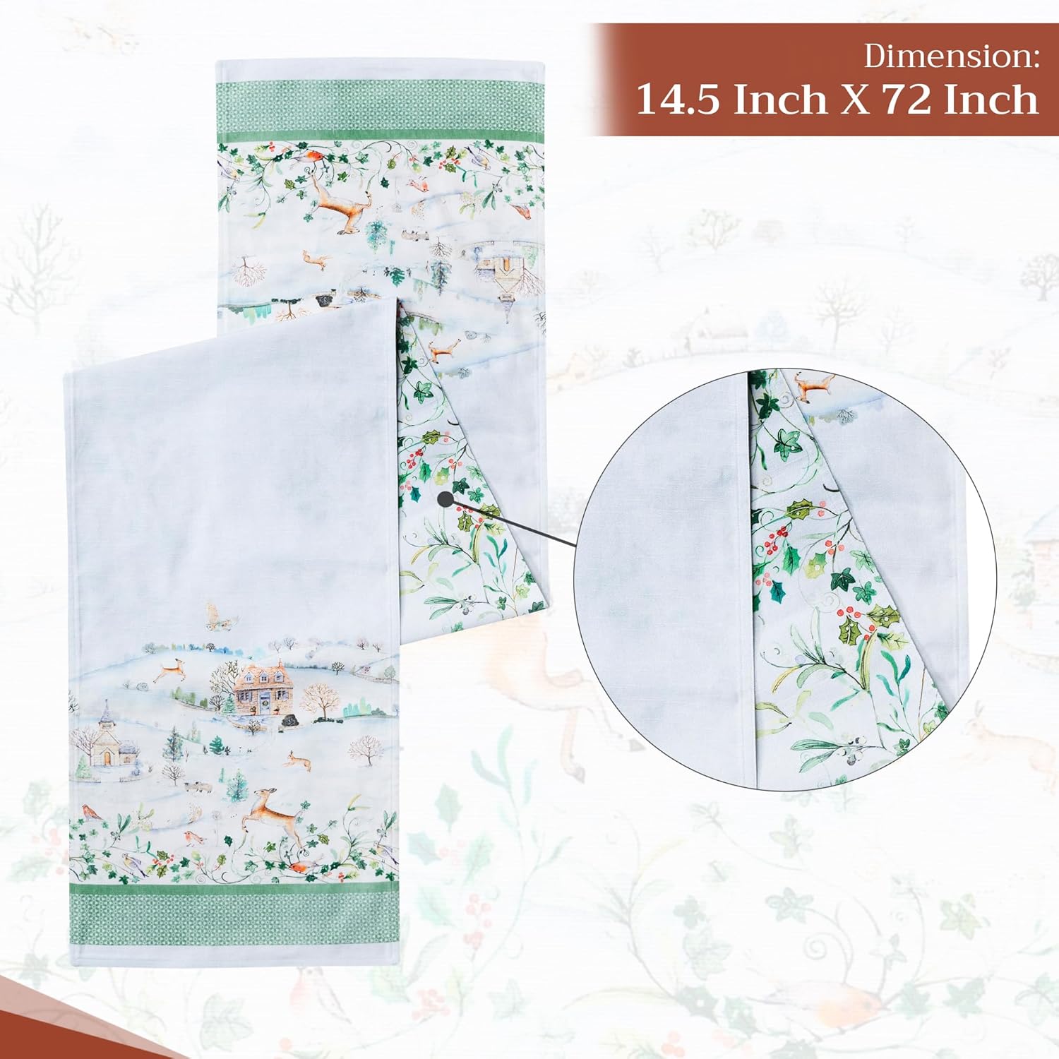 Maison d' Hermine Table Runner 100% Cotton Double Layer Table Runners 72 inches Long for Thanksgiving Christmas Decorations Home Kitchen Dining Party Wedding (Snowy World, 14.5" x 72")