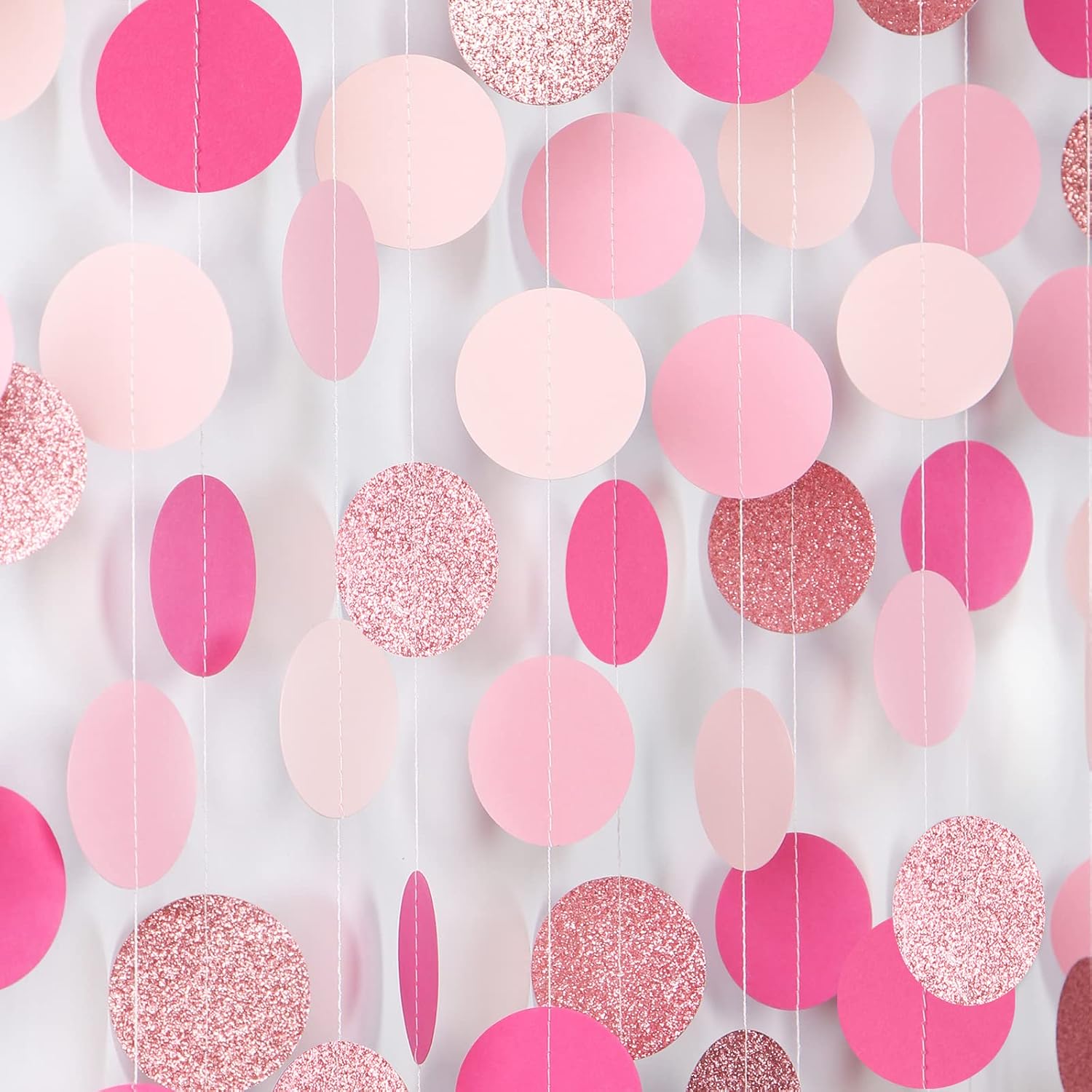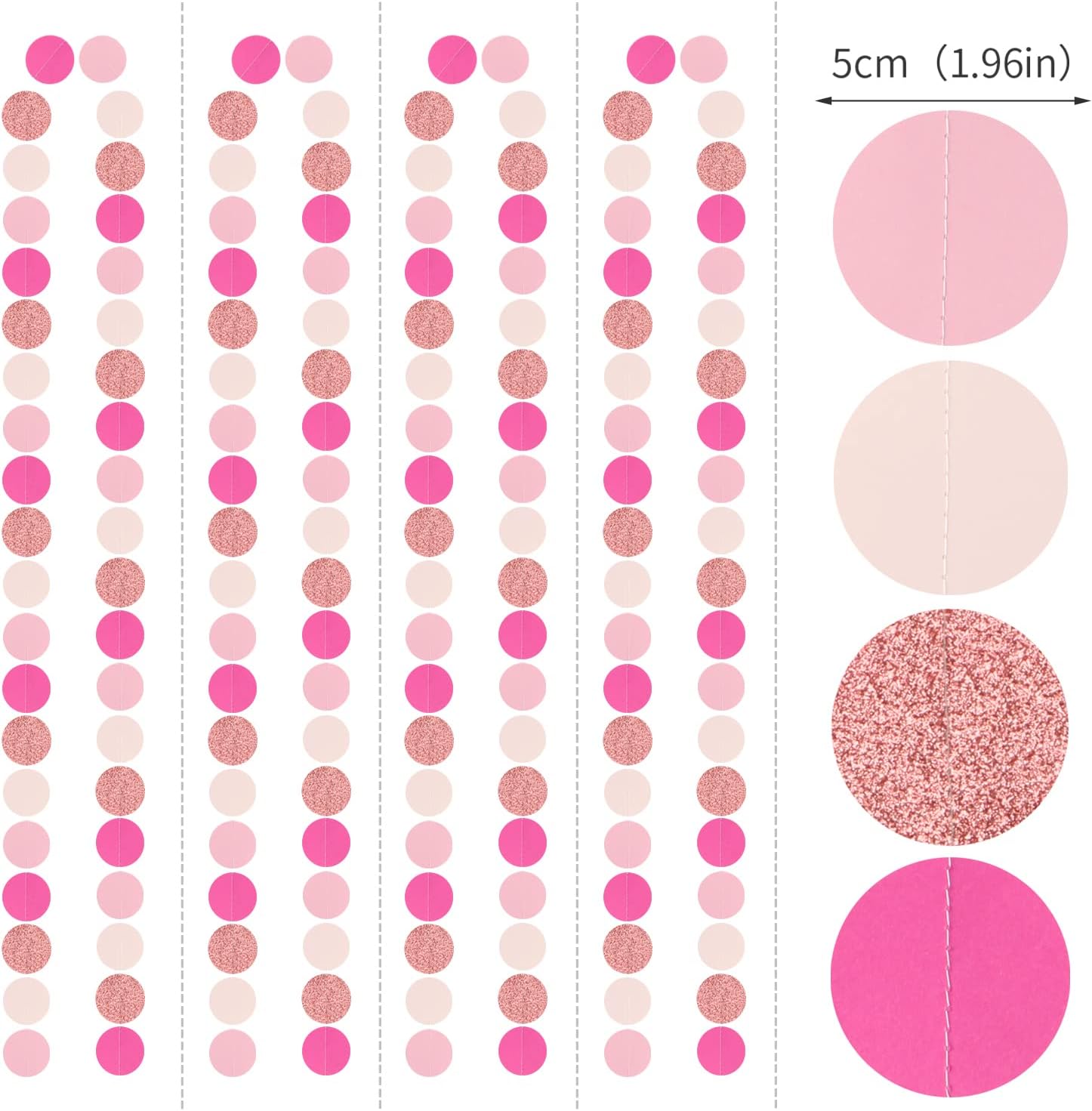 - 【Material】The material is eco-friendly light pink, hot pink, rose and double side gittler rose gold which don't drop glitter.You can cut to any length you want if you need shorter length.The circles are cut very neatly.