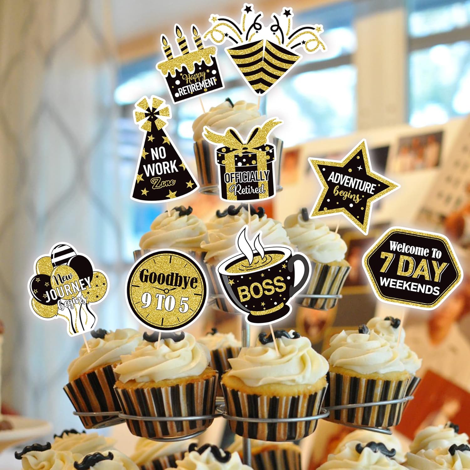 - 【Wide Occasions】These cupcake toppers are perfect for Retirement Party Cake Decoration Party Suppliess, they can make your cupcake more attractive and attracts the eyes of guests and friends. You can also apply them for ice cream, fruits, cookies and other desserts.