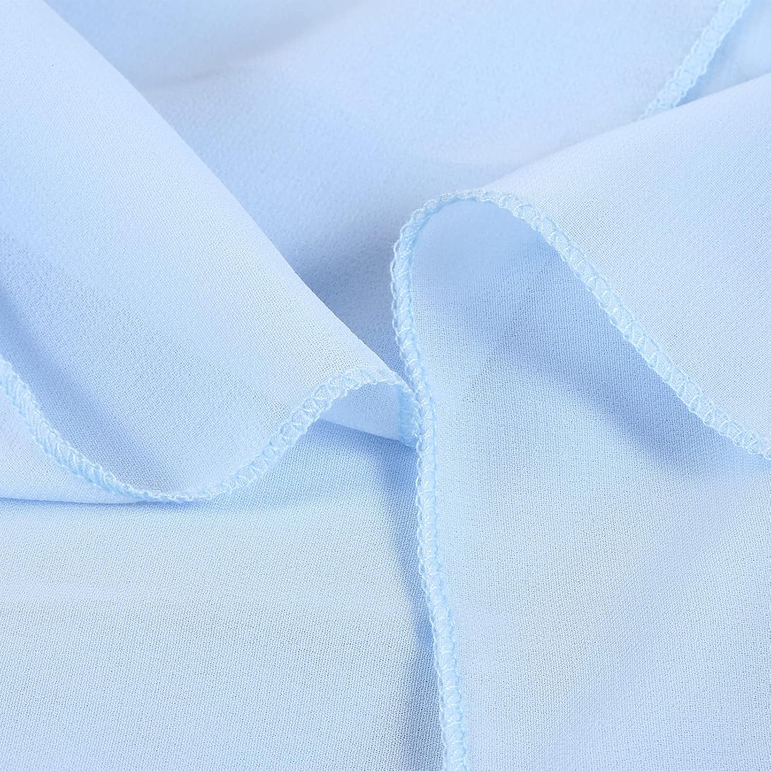 - ๐ก Baby Blue Table Skirt Material: The extra long chiffon table skirt is made of Sheer Chiffon which is wrinkle-free, soft, and with a nice drapery. Table skirt both robust for kids birthday party supplies and elegant if used for wedding decoration.