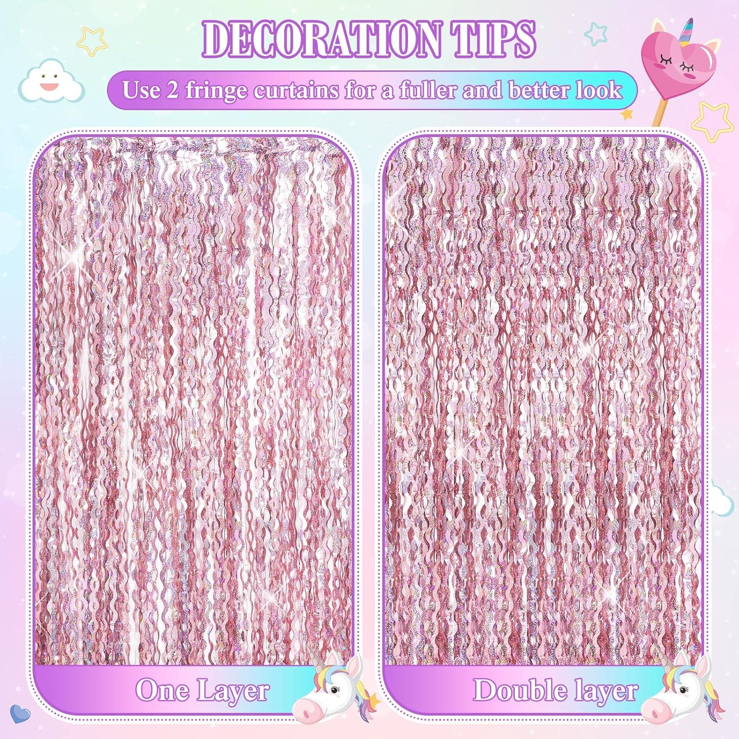 - Sufficient Quantity: you will get 6 pieces of tinsel foil fringe curtains in light purple, light pink and blue green 3 colors, which are sufficient in quantity to satisfy your party scene setting and decorating needs, also you can share them with your mates