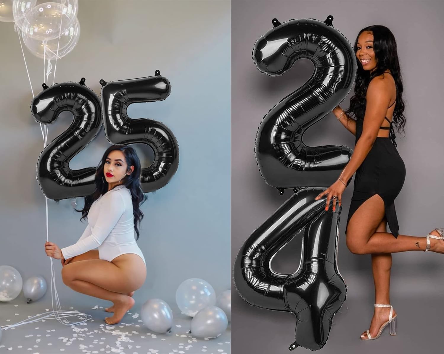 - 【How to Use】- Fill 90% with helium or air, then tie with ribbon or secure with balloon tape. The foil balloons can be reused and deflated with a straw after the party. When you put them away, they can turn into beautiful black number balloons again next time!