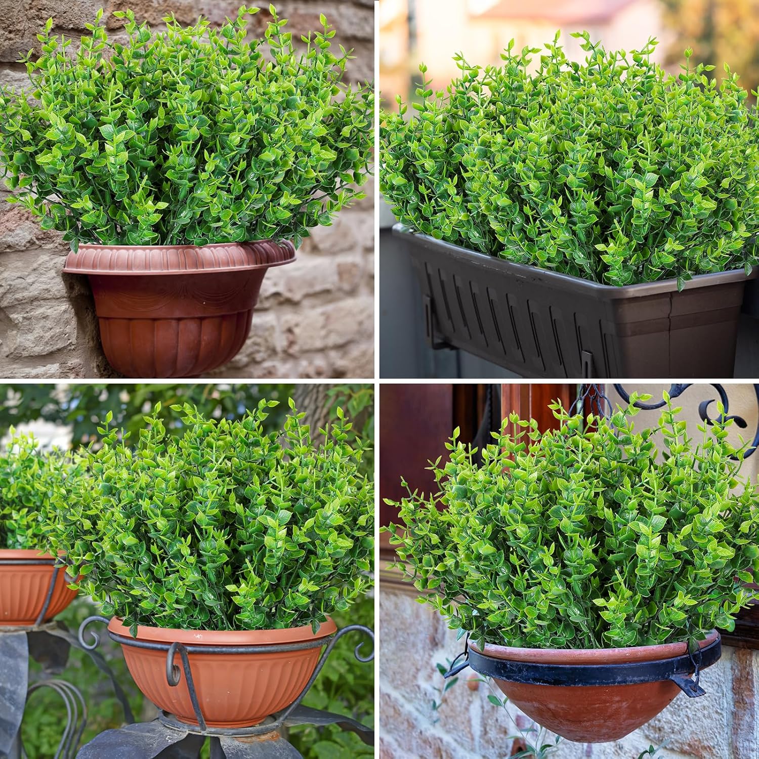 AmyHomie 20 Bundles Green Artificial Plants for Outdoor Spring Summer Decor UV Resistant Faux Wheat Grass Greenery Shrubs Eucalyptus Fake Plastic Plants Garden Porch Window Box Decorating