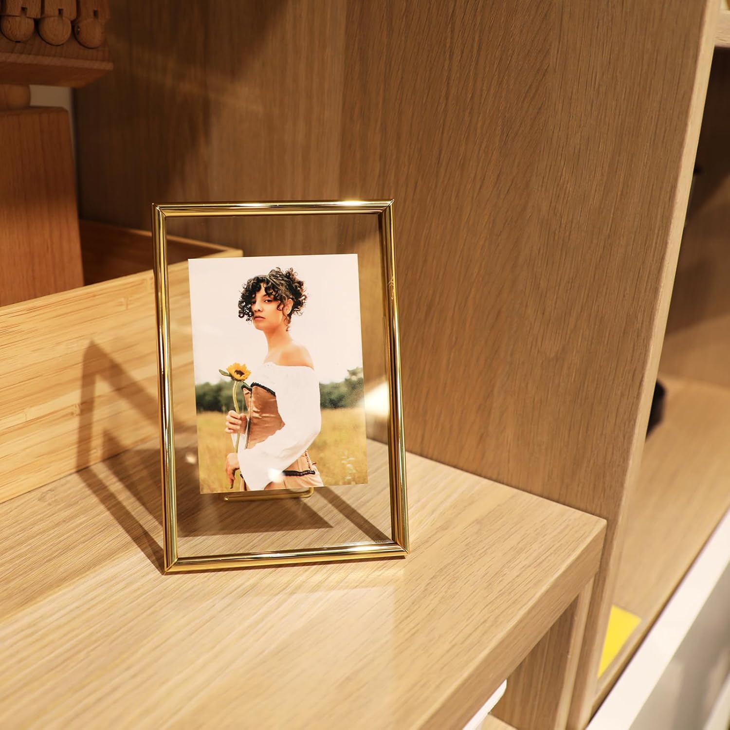 - 【Romantic Design】A gold metal frame with heart-shaped stand(Put you in my heart) and transparent glass, making it looks very romantic and elegant. It appears that the photo has a floating effect on it, So you can focus on the photo.