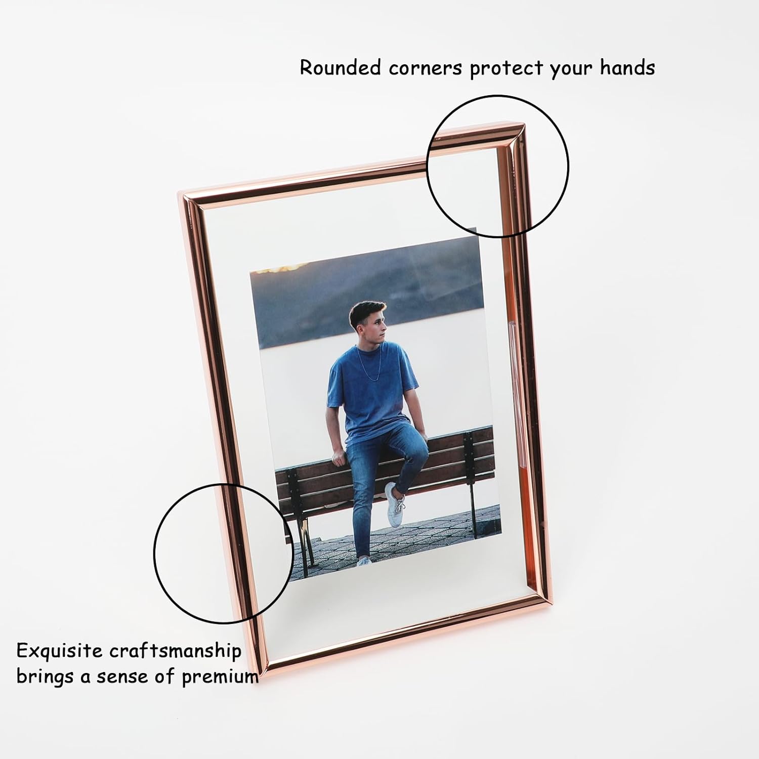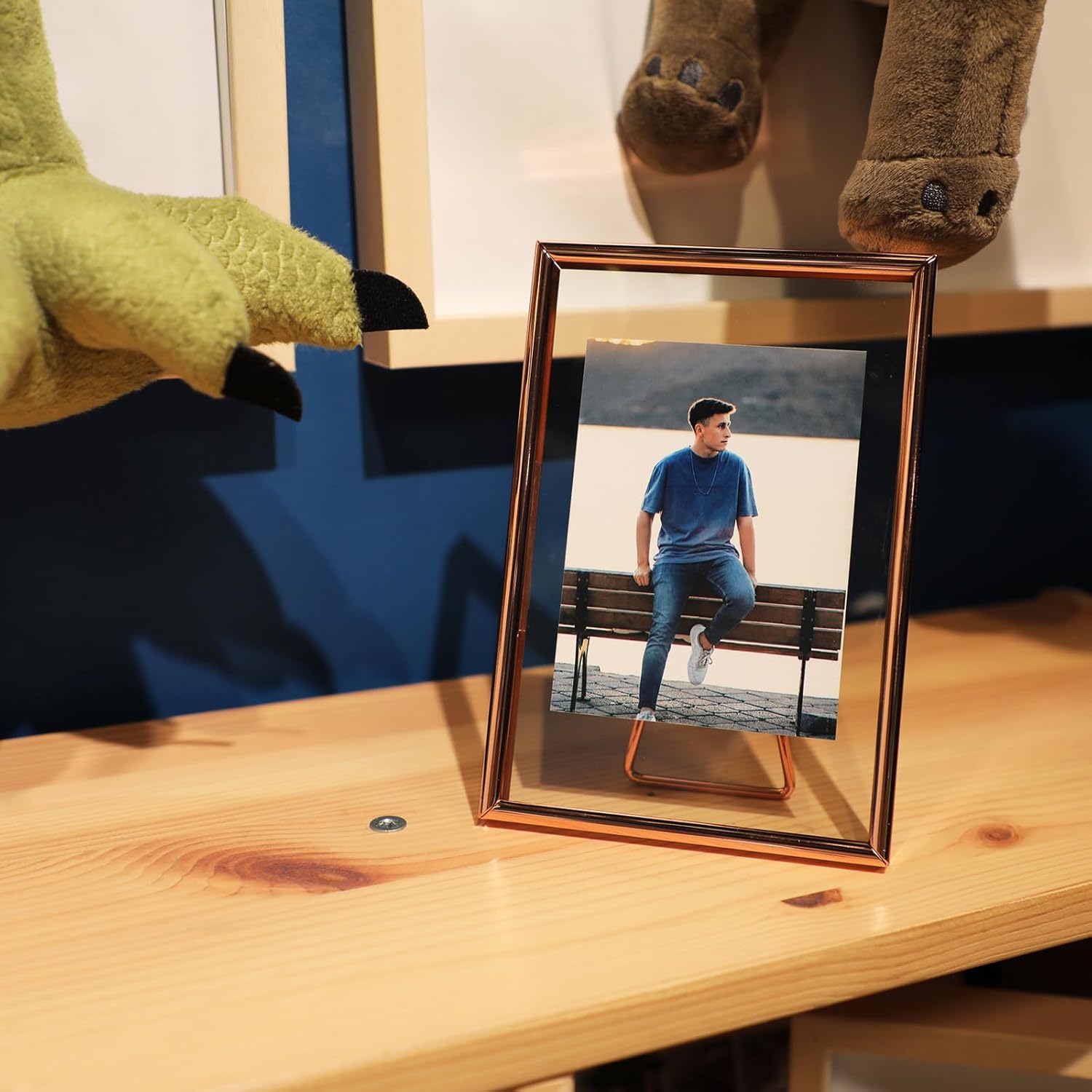 - 【Romantic Design】A rose gold metal frame with heart-shaped stand(Put you in my heart) and transparent glass, making it looks very romantic and elegant. It appears that the photo has a floating effect on it, So you can focus on the photo.