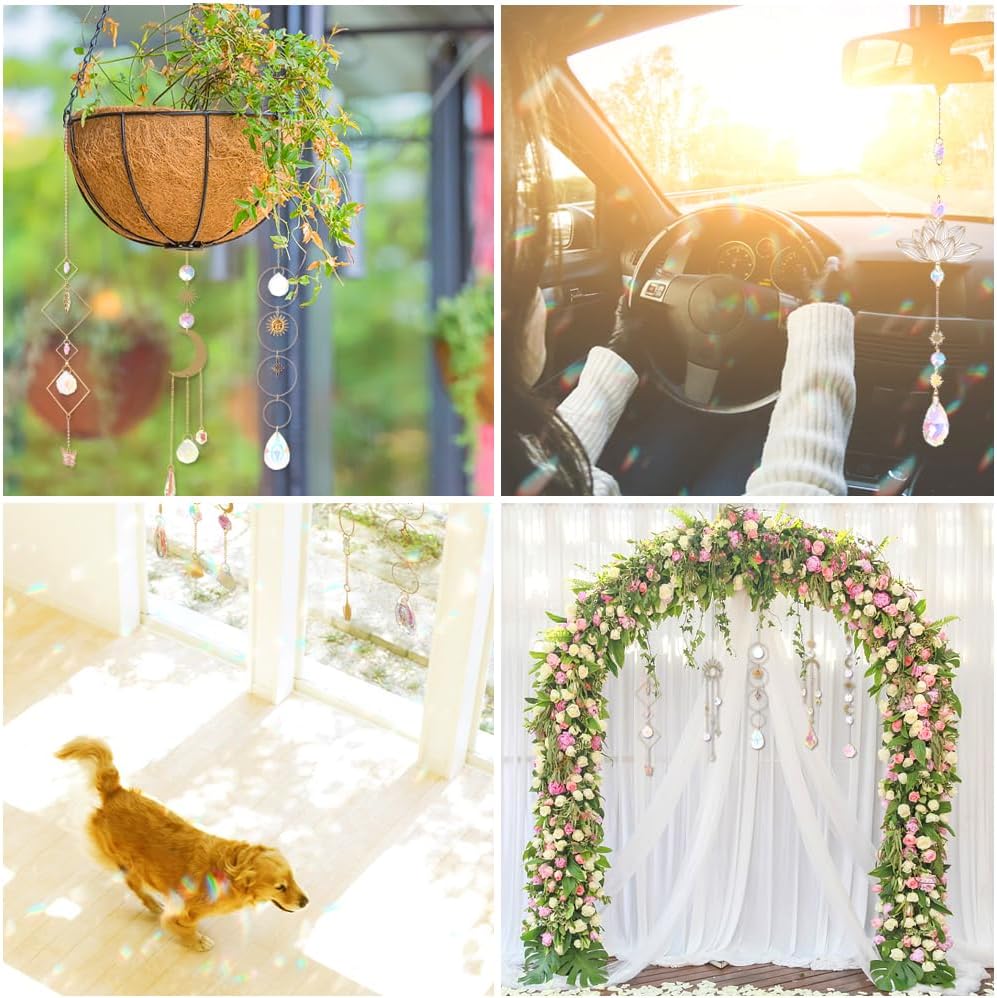 - Hanging Crystal Suncatcher: Sun Catchers kit contains 10 different designs of colorful prism pendants, each individually packaged to avoid crystal and metal scratches. Prism suncatcher will reflect the rainbows very well when the sunlight hits. Each crystal can meet your decoration needs, either alone or with any combination.