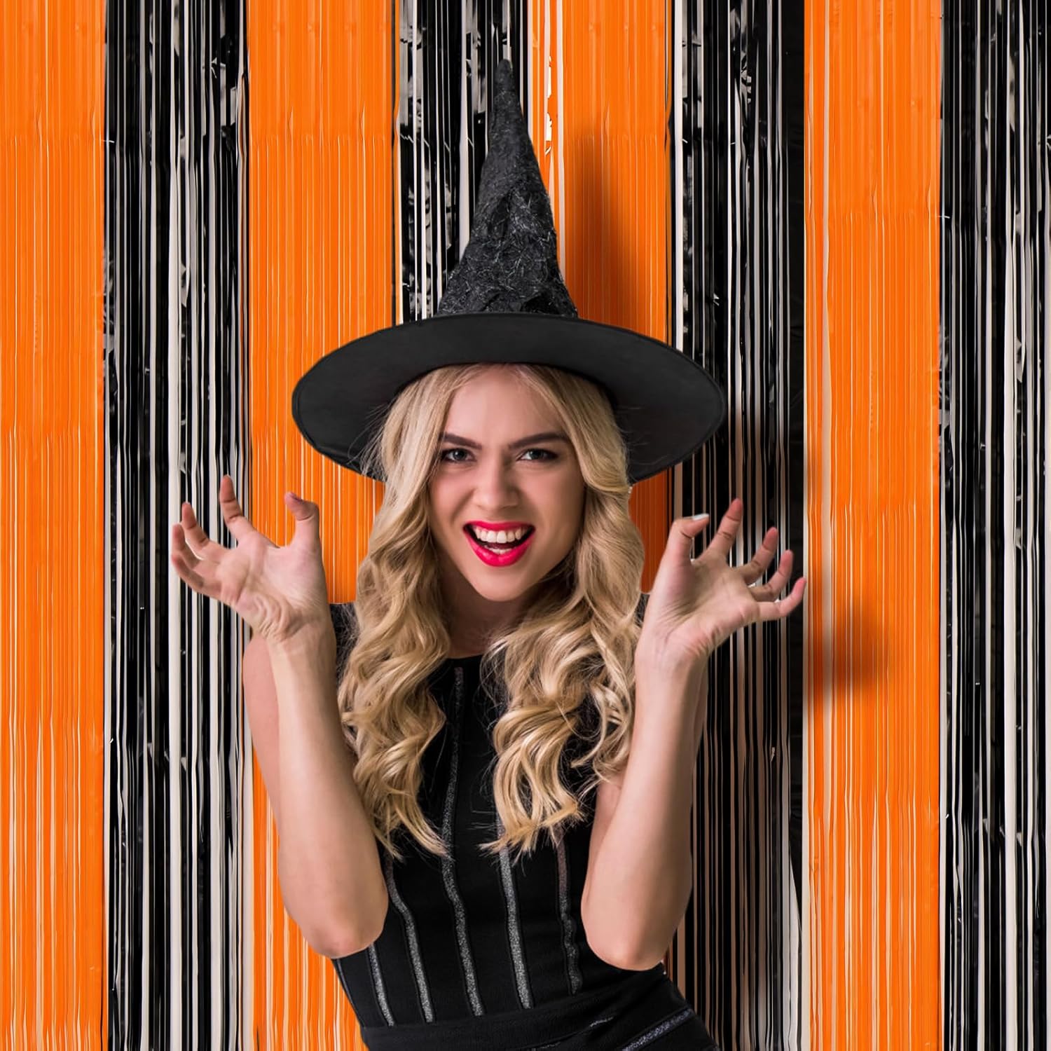 - Premium Material: This Black and Orange foil curtain backdrop is made of stable tinsel, non-fading, stay shiny and reusable. Unfold it and then enjoy your glittering party