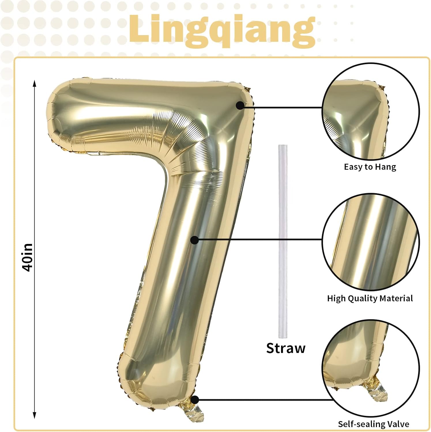 - πChampagne Gold Number 7 Balloon π - You will get 1pc 40 inch mylar foil number 7 balloon and 1pc straw. Perfect for 7th 17th 27th 70th 75th birthday or anniversary party decorations supplies.