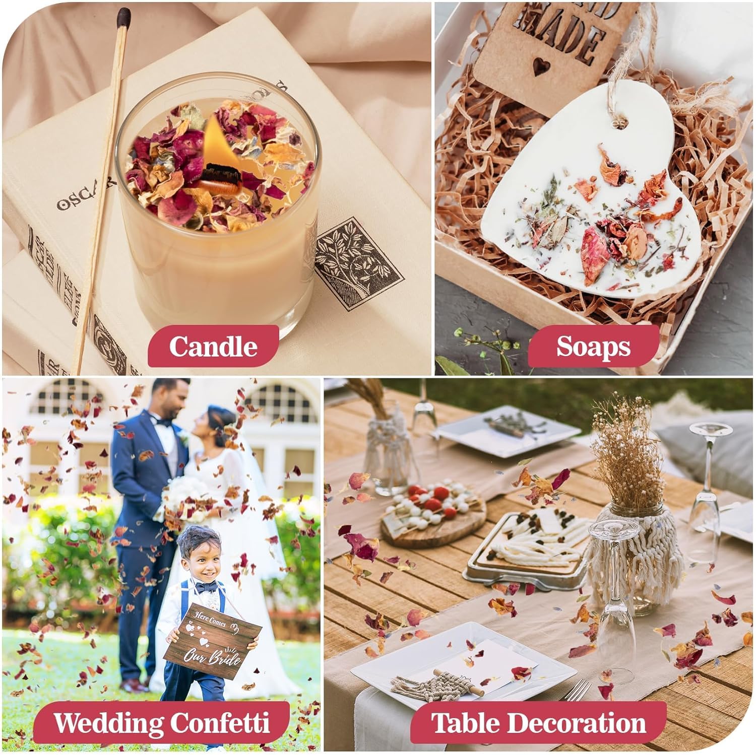 - Suitable for DIY & Versatile Use:It works perfectly as wedding confetti for wedding showers, and is also ideal for anniversary/birthday/Christmas decorations (such as table centerpieces, home decor, and gift wrapping). Beyond festive decor, it doubles as a DIY material for handmade soaps, candles, resin crafts, sachets, dried flower paintings, and more, fully meeting diverse decorative and creative needs