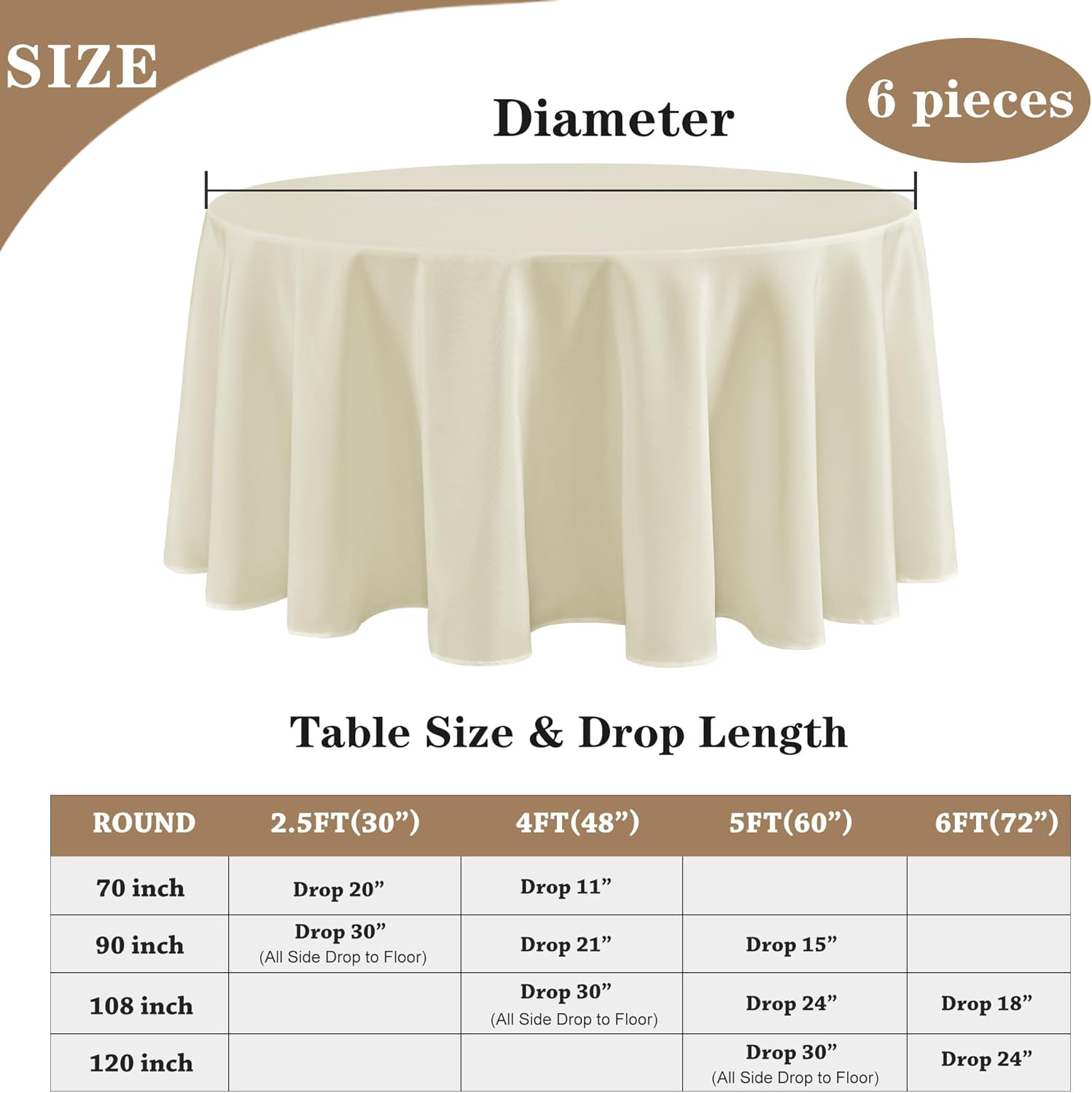 Fitable 6 Pack Ivory Round Tablecloths - 120 Inches in Diameter - Stain Resistant and Washable Table Clothes, Polyester Fabric Table Covers for Wedding, Party, Banquet, Formal Events