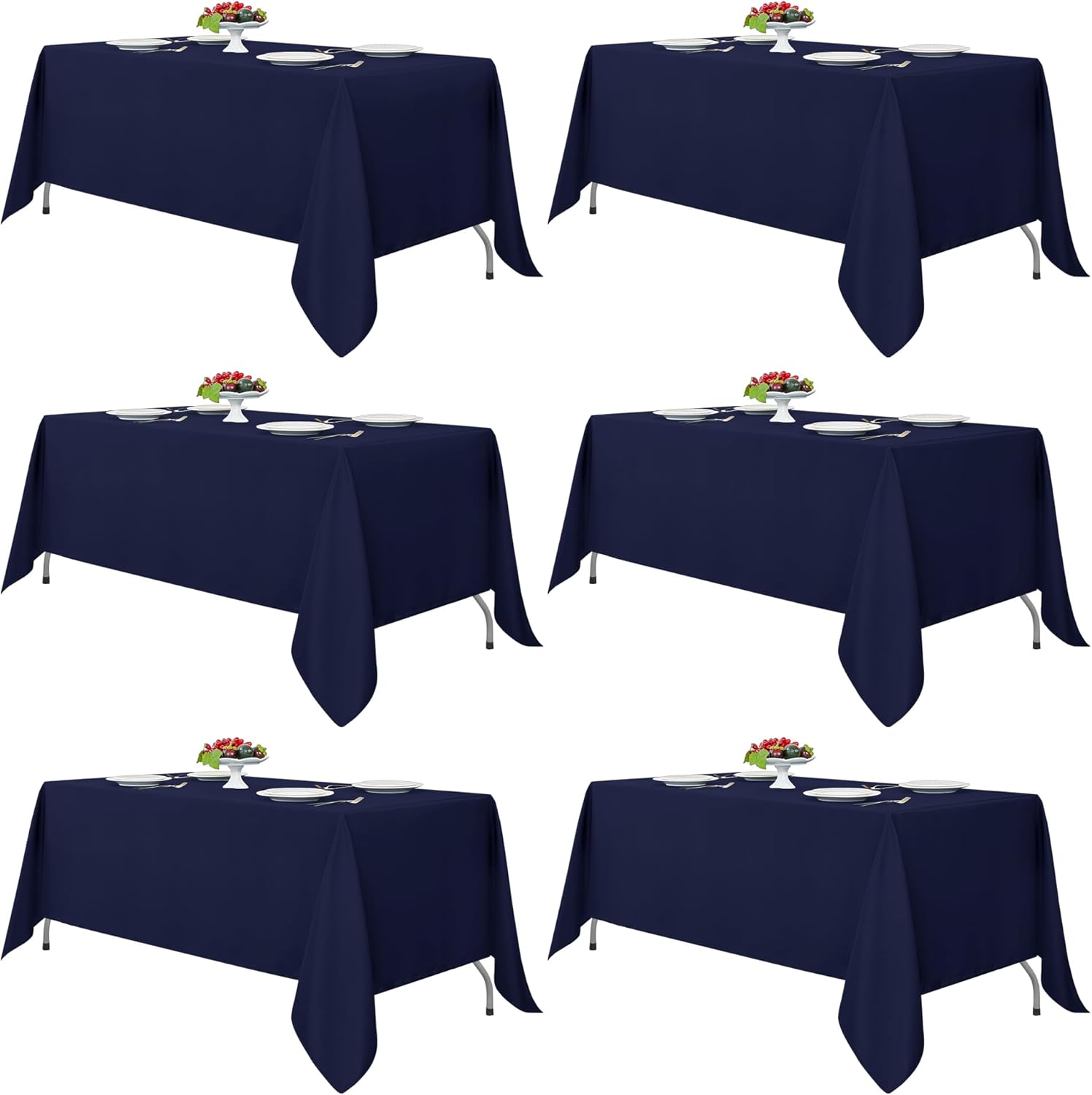 Fitable Navy Tablecloths for 6-8 Foot Tables, 6 Pack - 70 x 120 Inches - Reusable and Washable Table Clothes, Polyester Fabric Table Covers for Wedding, Party, Banquet