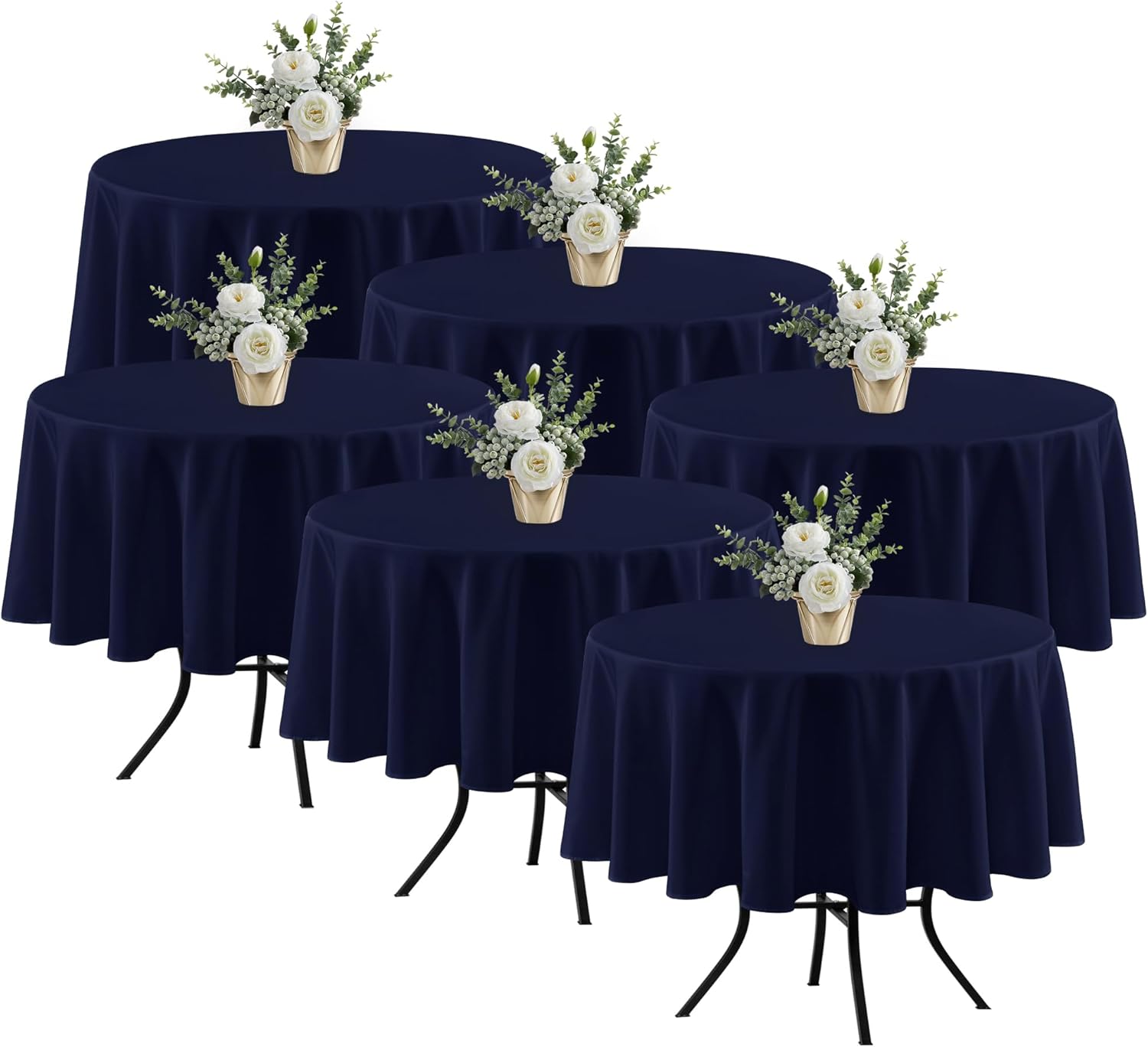 Fitable 6 Pack Navy Round Table Clothes - 70 Inches in Diameter - Stain Resistant and Washable Tablecloths, Polyester Fabric Table Covers for Wedding, Party, Banquet, Gathering