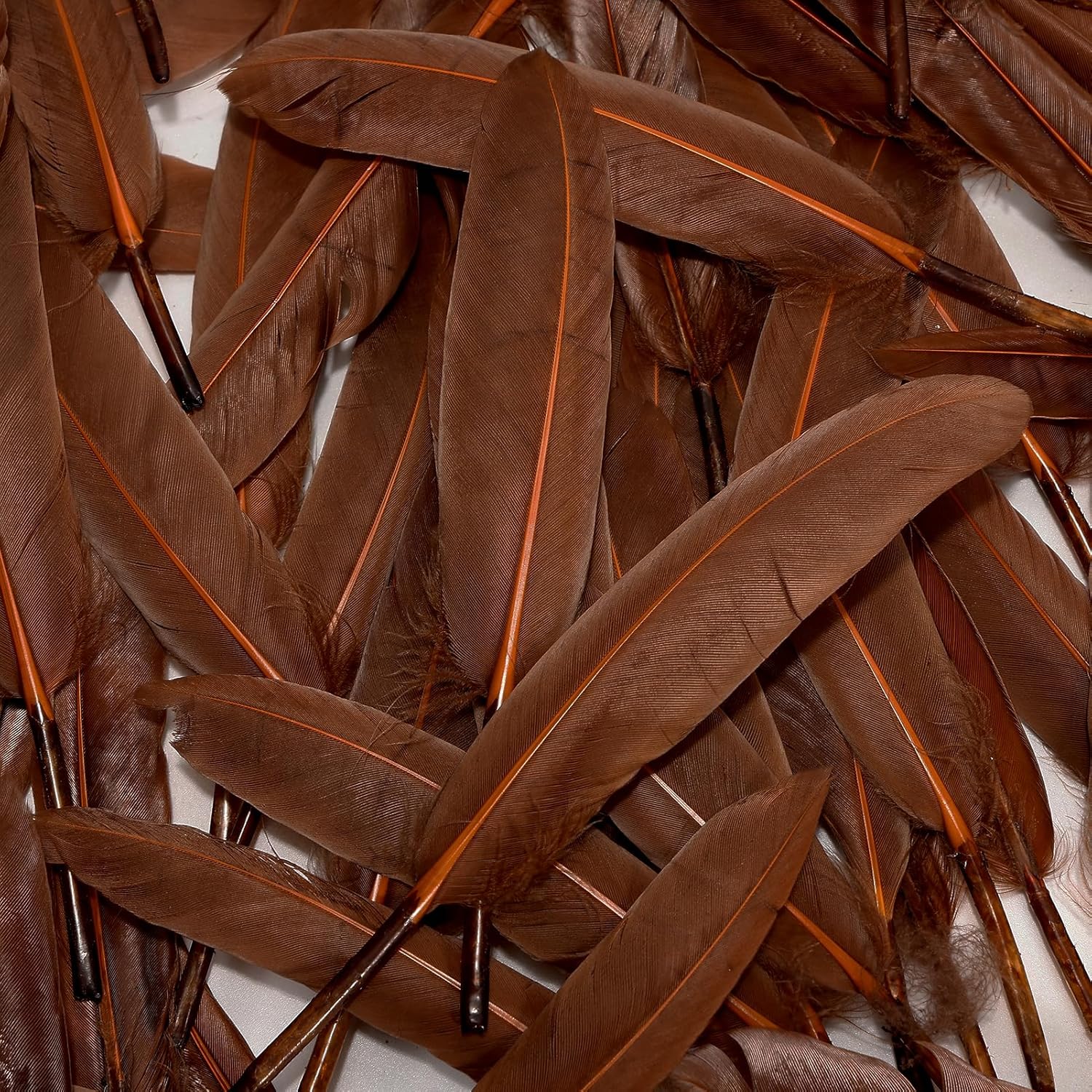 FeelfunFeather 120pcs Coffee Brown Goose Cochettes Feather Natural Bulk 4-6 inch 10-15cm for Wedding Party Christmas Decorations DIY Crafts Goose Cochettes Feather