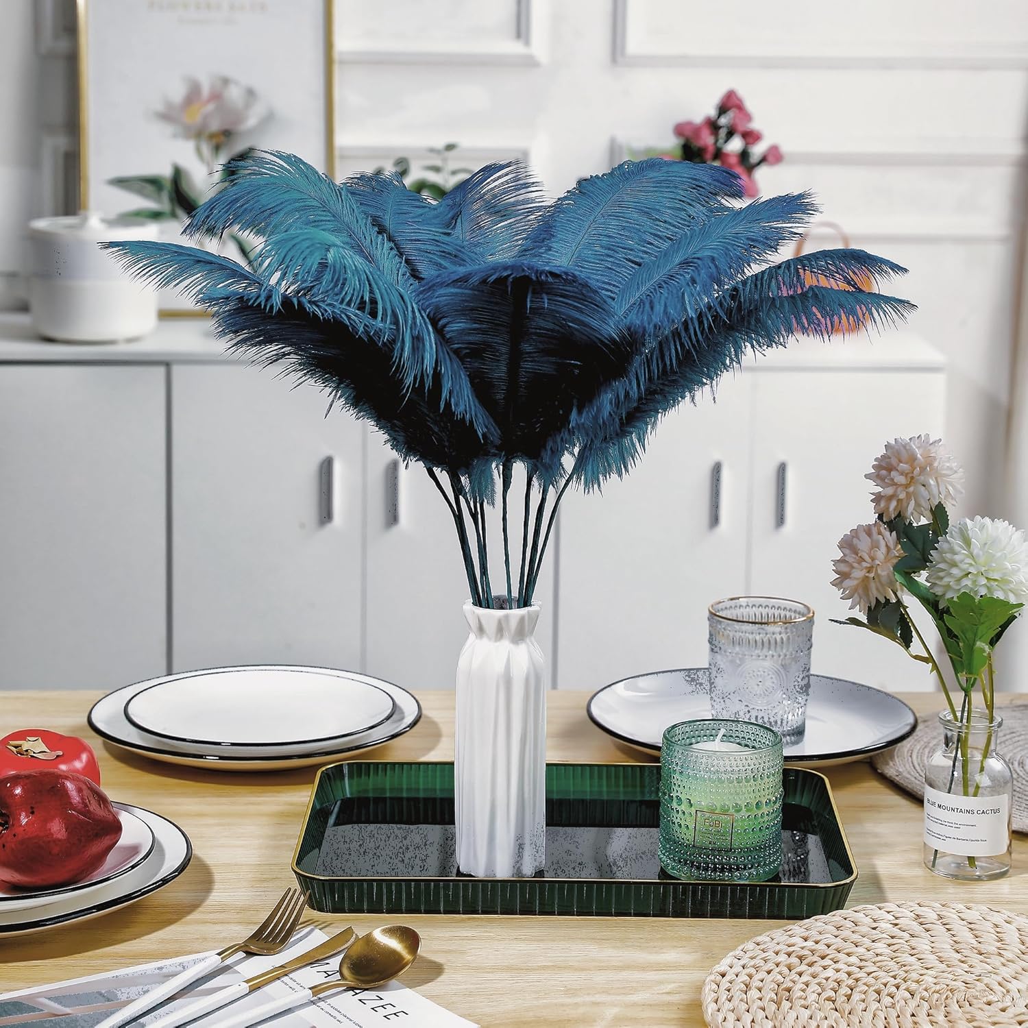 - 22inch Ostrich Feathrs Kit: 20pcs 10-12 inches turquoise ostrich feathers, 20 pcs 10 inches long iron wire, and a 15m tape in the same color with the feather. Rich set content to meet your decoration and use needs