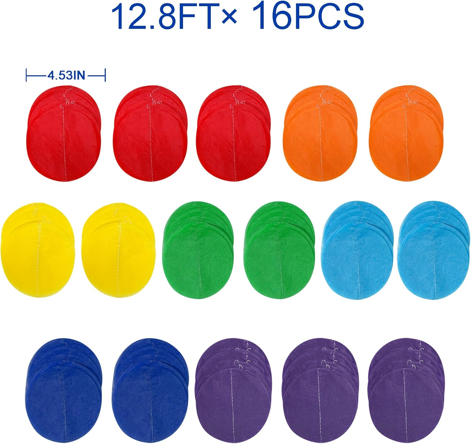 - 🔴PACKAGE CONTAINS- 16 packs of rainbow circle dot party garland banner,Each string is 12.8 feet/3.9 meters with 30 pcs polka dots, Total is 62.4 meters/205 feet.