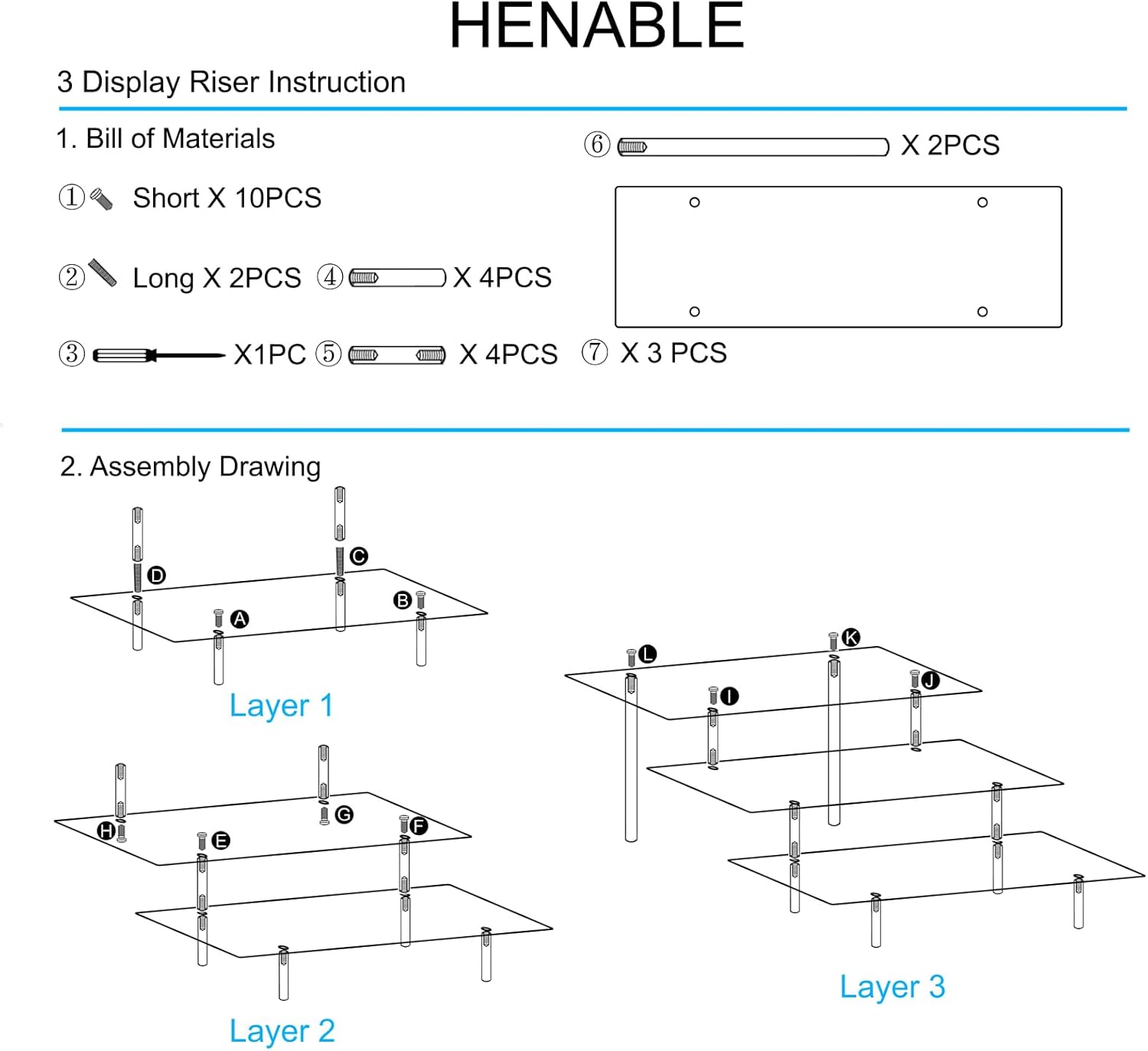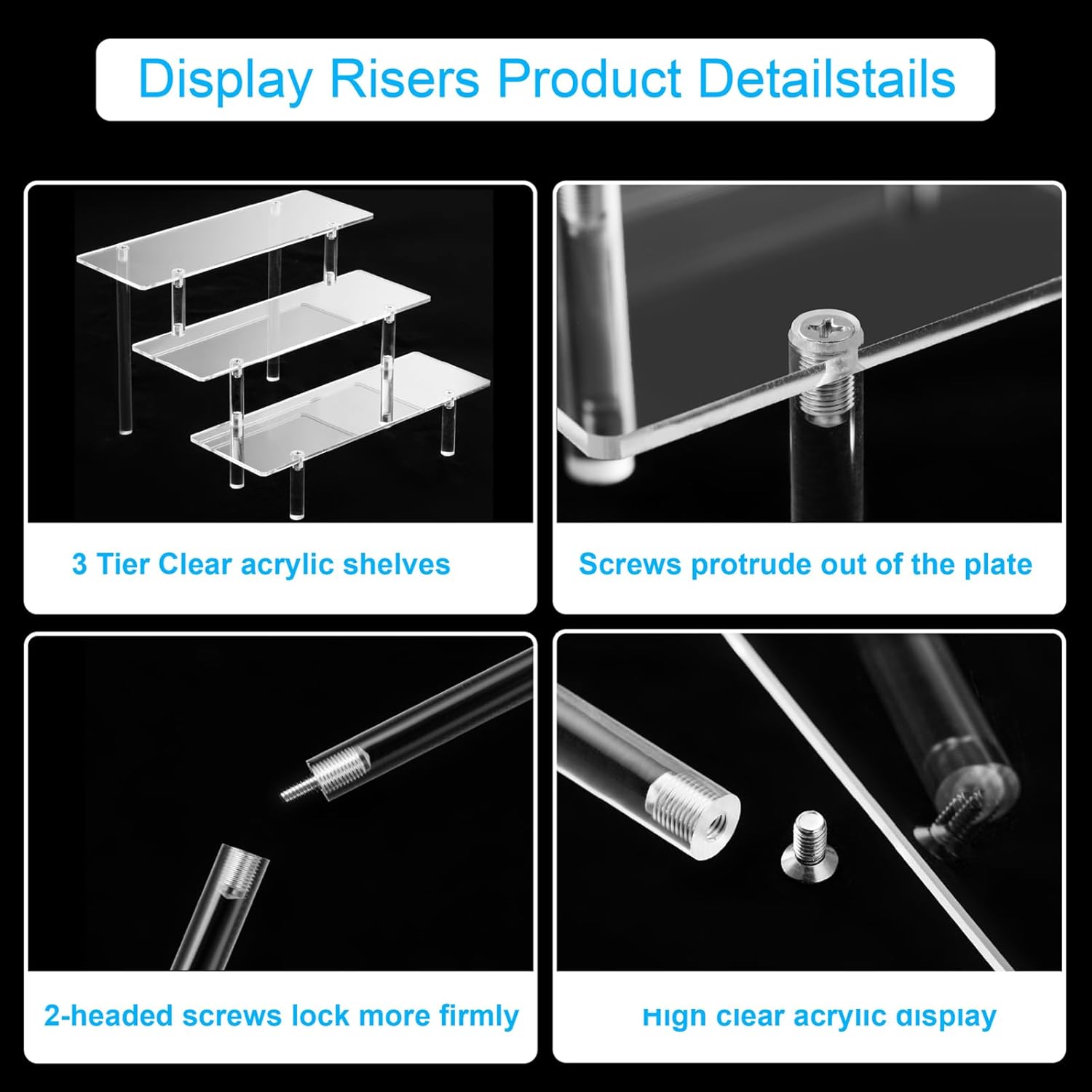 - What You Get: Acrylic stand riser include 2 X 3-tier display stand, 1 X Phillips Screwdriver, 1 X Specification