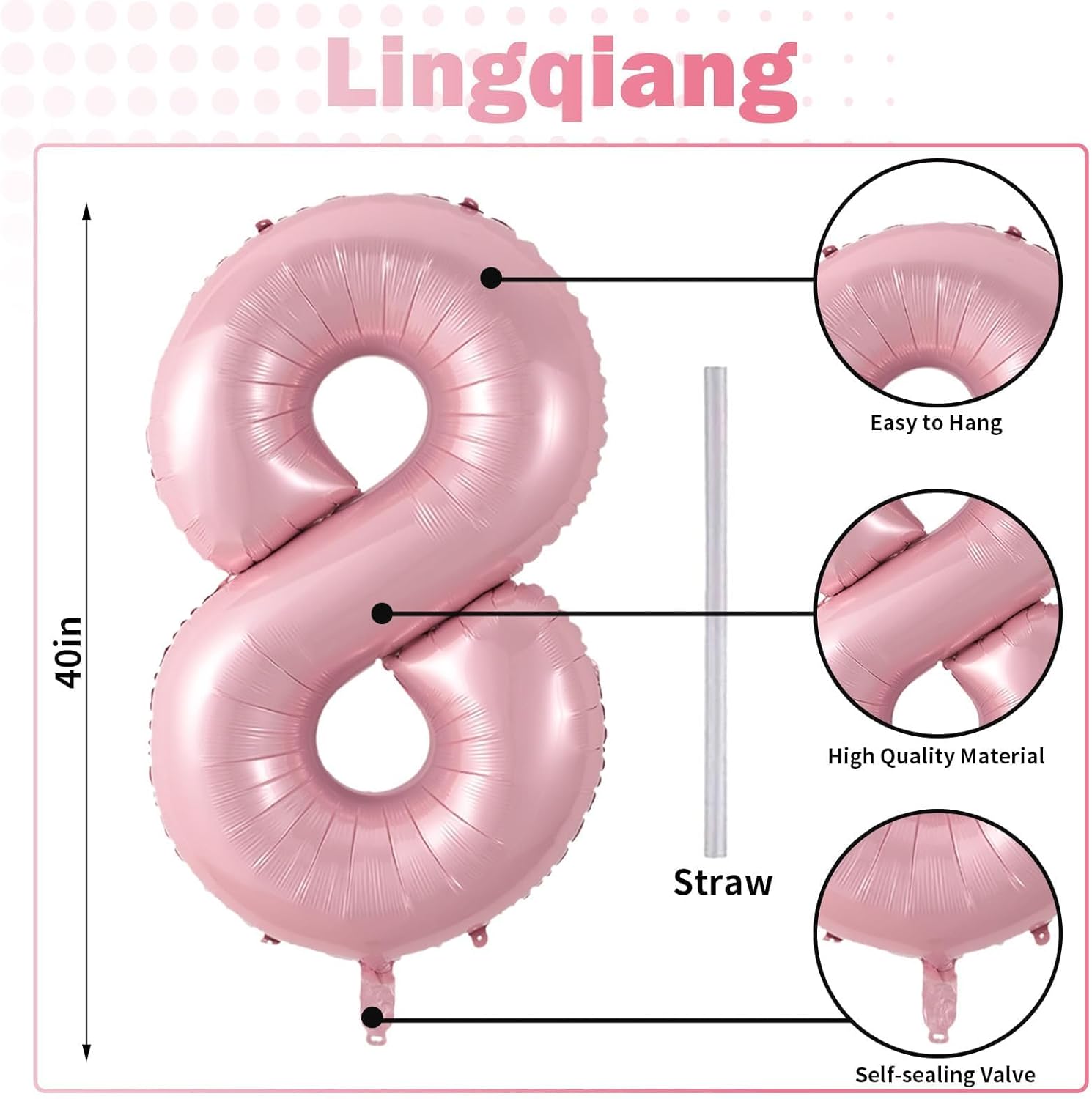 - π Repeated Use π - The pastel pink number 8 balloons set contains a straw that can be used to deflate the foil balloon, simply insert the straw into the valve and press gently until the gas is completely expelled. After use, it can be folded and stored for reuse.