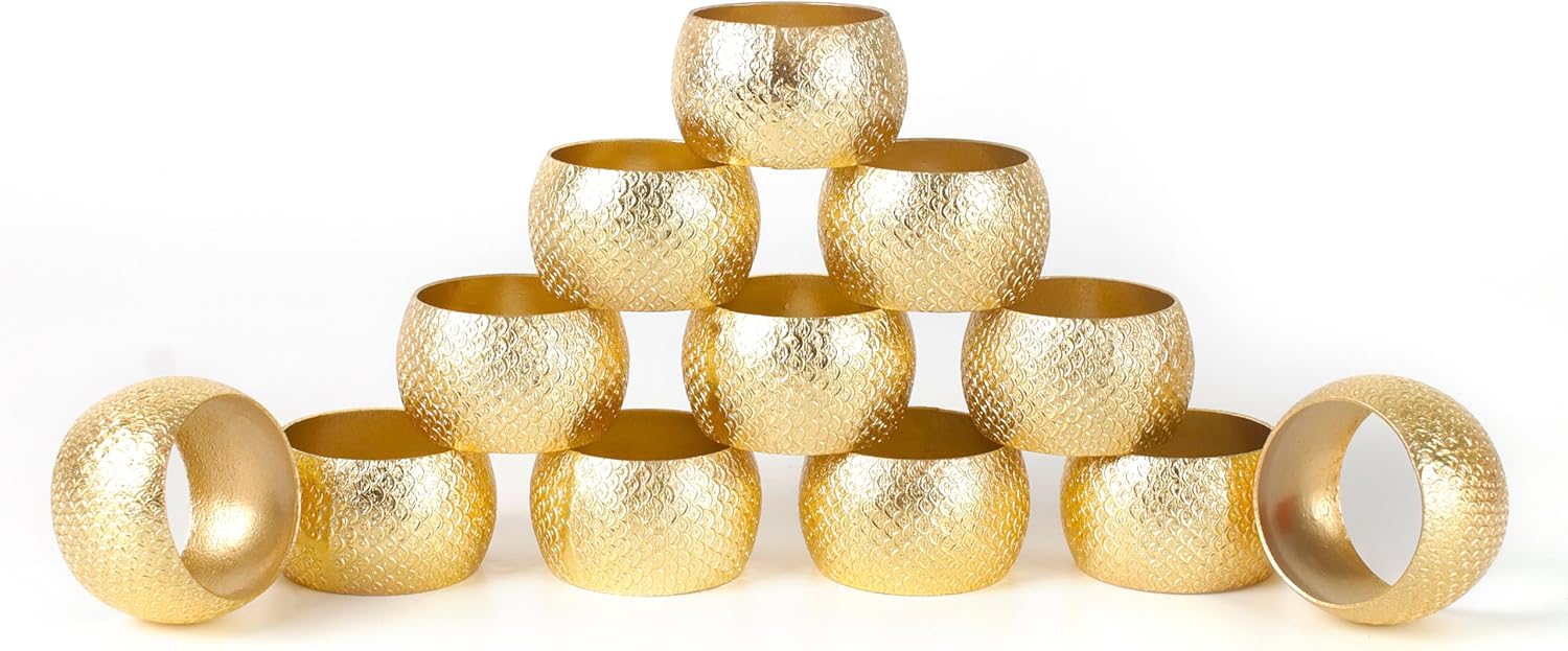 - ✅ SET OF 12 -IDEAL SIZE FOR ALL NAPKINS: Each gold metal napkin ring measures 2 x 2 x 1 inches, designed to hold cloth or paper napkins with ease. Comes in a coordinated set of 12, perfect for creating a uniform and elevated table presentation.