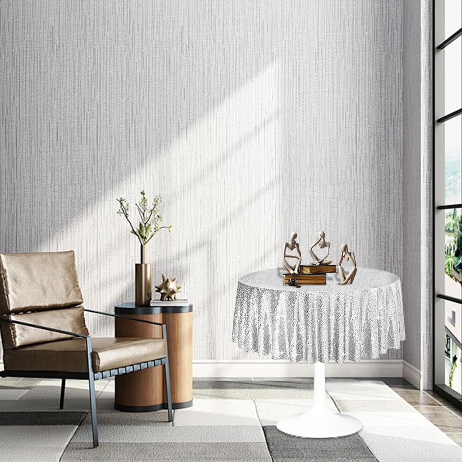 - Luxurious Style: The round silver sequin tablecloths design adds sparkle to any occasion. The smooth surface and sawtooth edge locking technology ensure sequins stay put,and creating a vibrant and joyous atmosphere.Note that the color of the product shown in the picture will be different from the actual color in natural light.