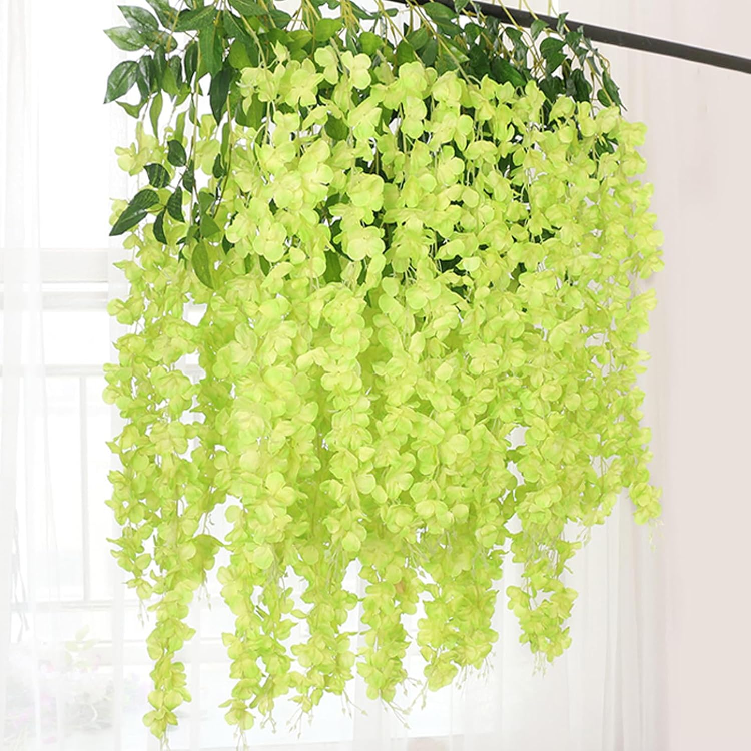 - 【Package Included】24 pieces of silk green wisteria hanging flowers, each length 45.27 inches. Every artificial wisteria garland has 3 branches and 6 leaves, the wisteria flower petal length is 23.62 inches. (Note: There may be some color differences in different lights)
