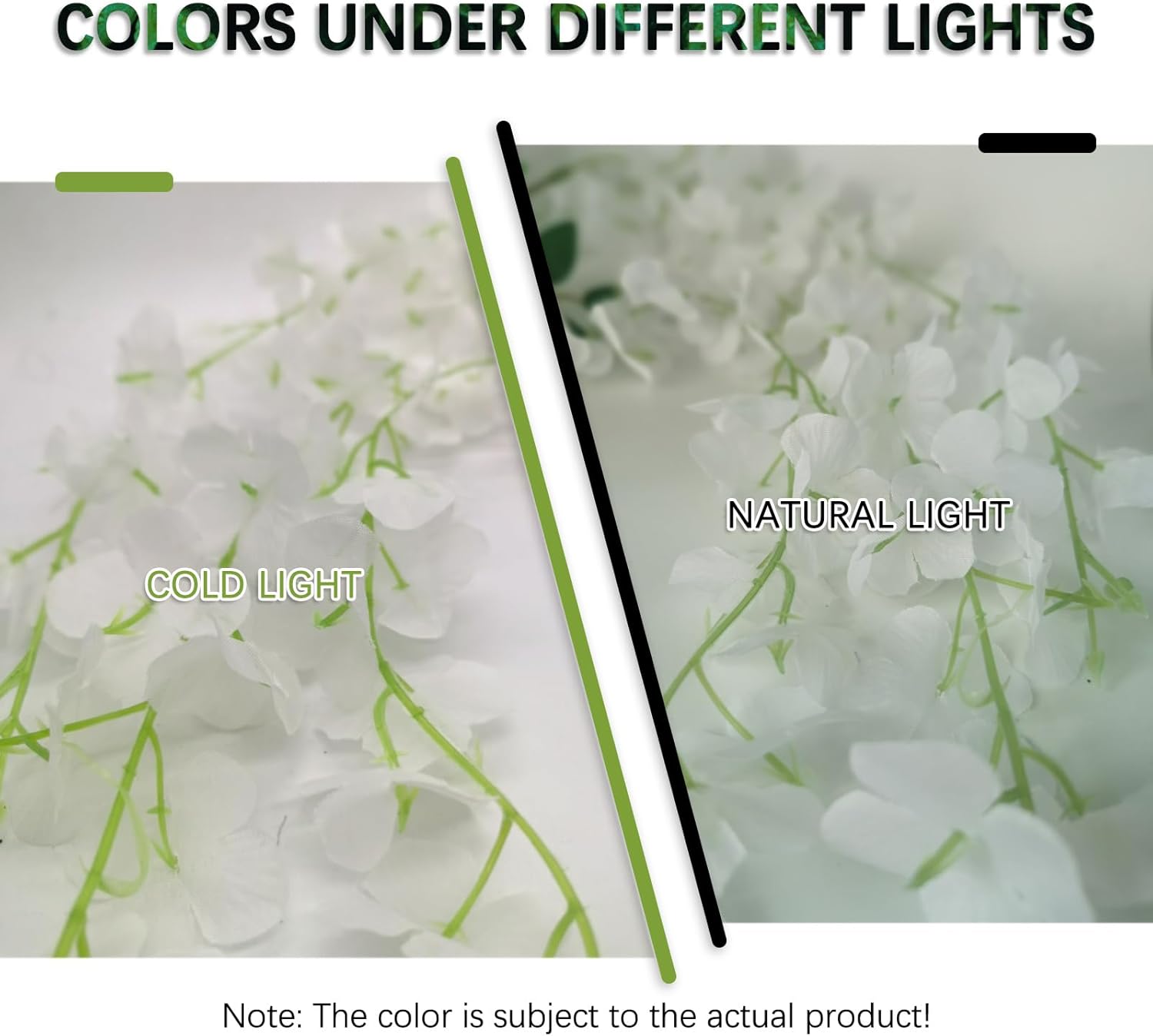 - 【Exquisite and Reliable Silk Material】This white faux flower vines string is made of silk, the delicate wisteria flowers garland is supported by plastic rods inside, they are colorful, reliable, and do not fade easily; They are easy to wash and keep clean, and the shape is realistic, looks natural and does not fall off the rods easily.