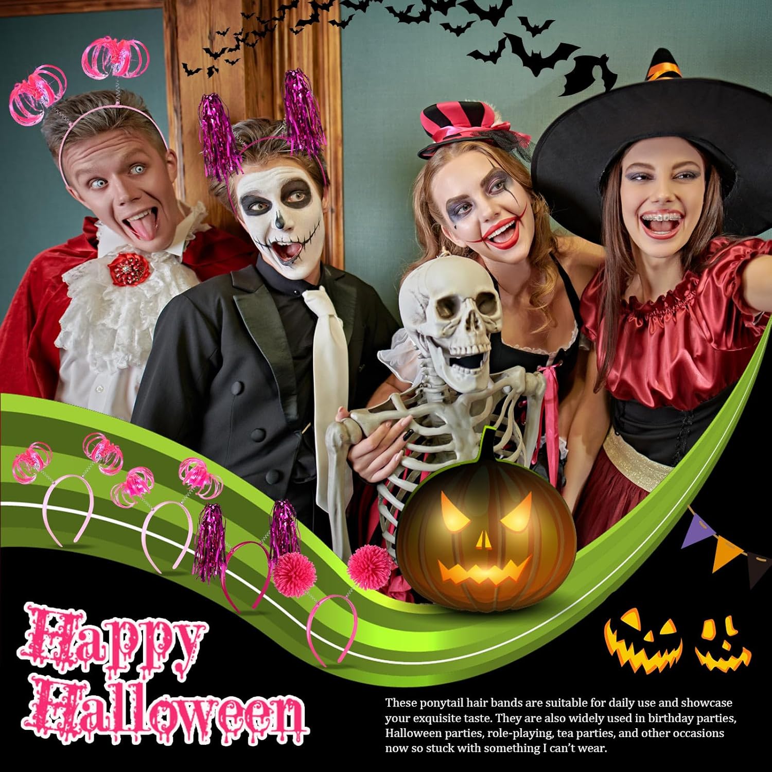 Censen 12 Pcs Halloween Pom Pom Party Headbands Tinsel Ponytails Spirit Head Bopper Headwear for Christmas Birthday Holiday