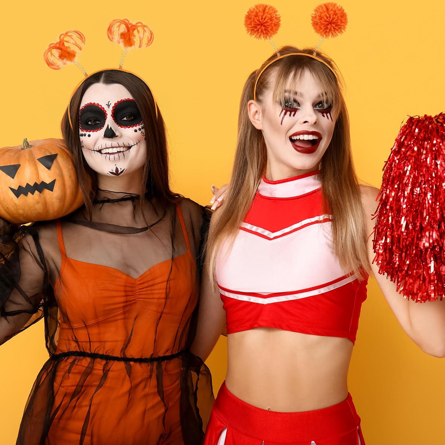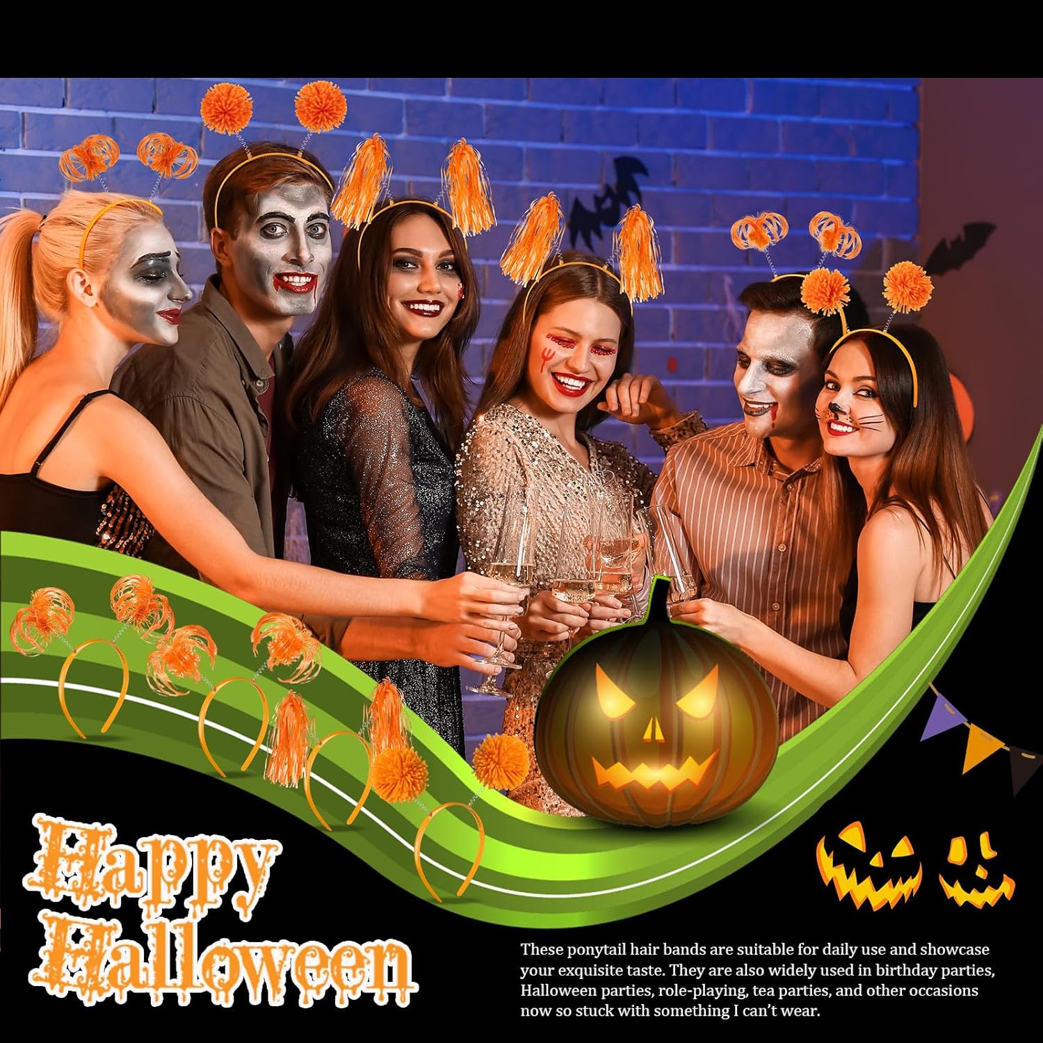 Censen 12 Pcs Halloween Pom Pom Party Headbands Tinsel Ponytails Spirit Head Bopper Headwear for Christmas Birthday Holiday