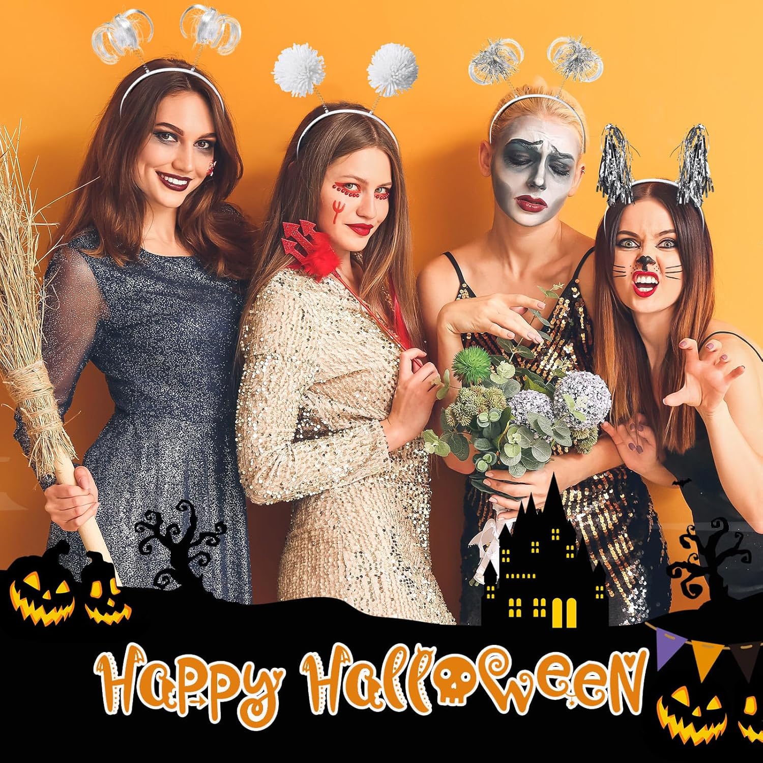 Censen 12 Pcs Halloween Pom Pom Party Headbands Tinsel Ponytails Spirit Head Bopper Headwear for Christmas Birthday Holiday