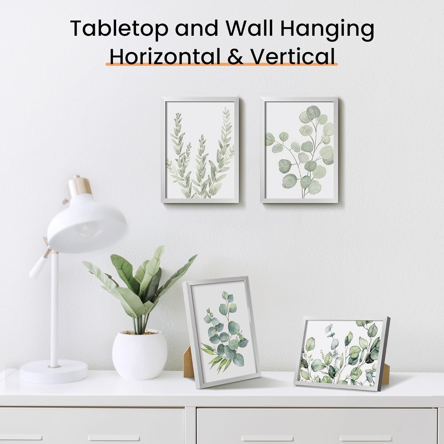 upsimples 5x7 Picture Frame Set of 3, Made of High Definition Glass for 5 x 7 Silver Frames, Wall and Tabletop Display Thin Border Photo Frame for Home Décor