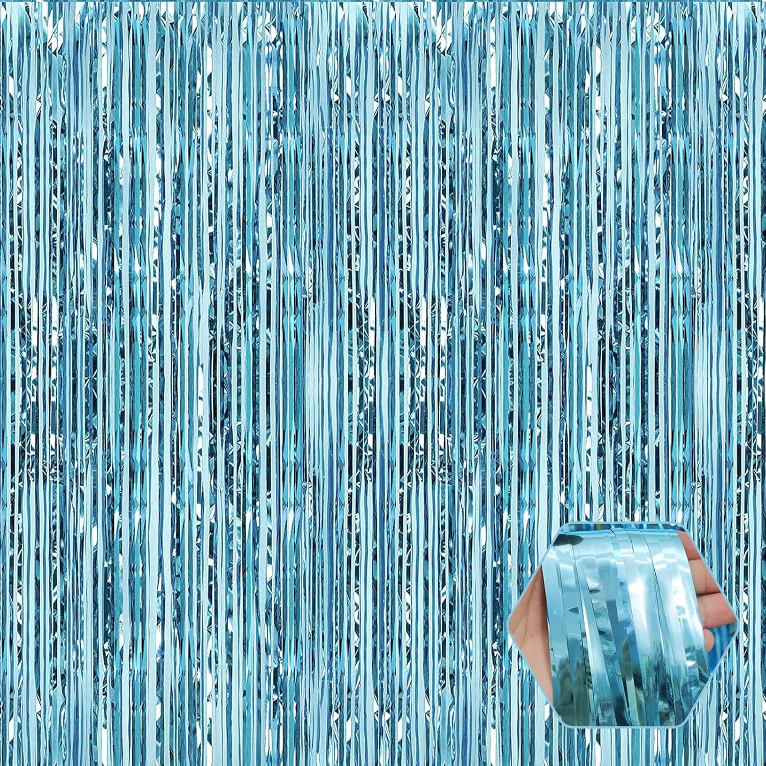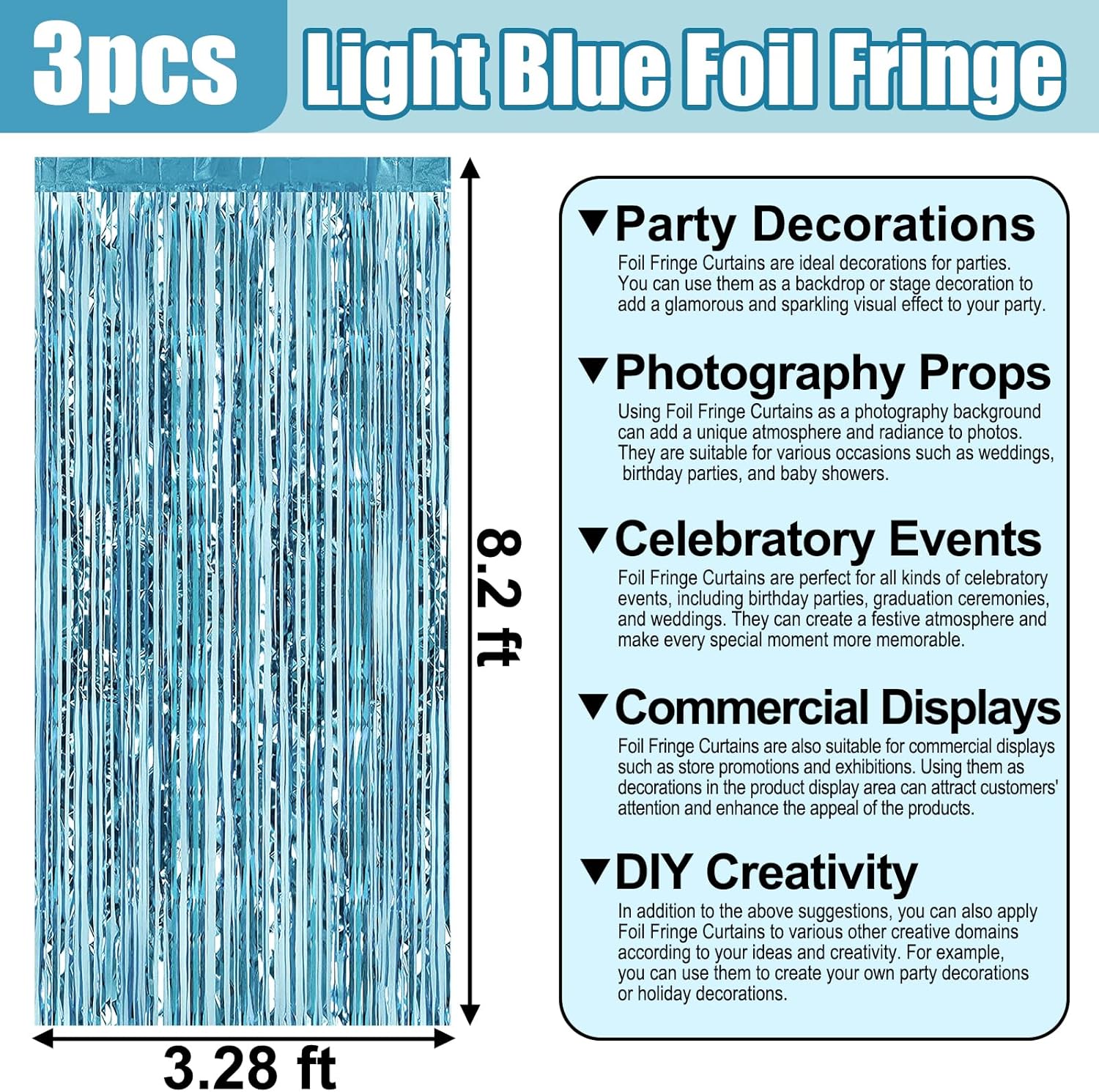 3 Pack Light Blue Foil Fringe Curtain Backdrop, 3.28Ft x 8.2Ft Metallic Tinsel Foil Fringe Streamer Curtains for Photo Booth, Christmas Day, Thanksgiving, Wedding, New Year Party Decorations