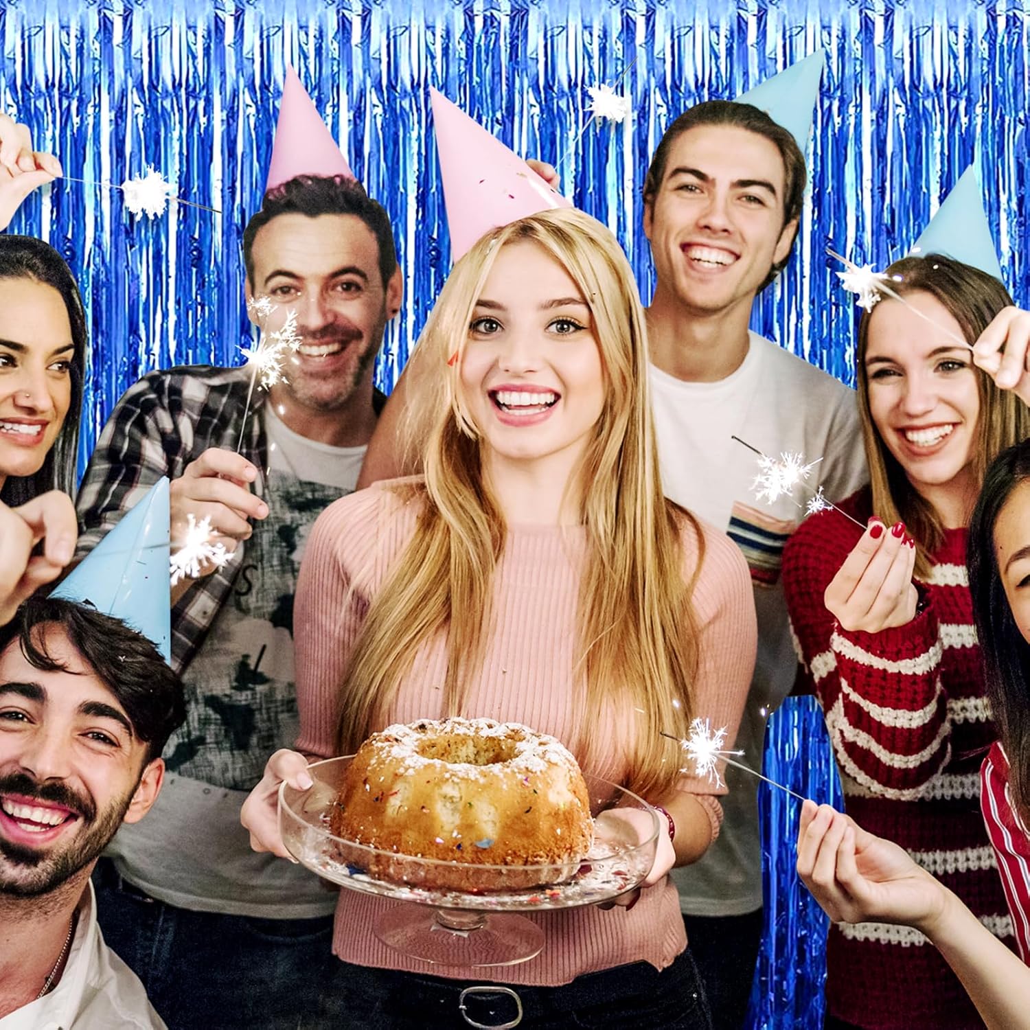 - 3.28Ft x 8.2Ft Feet | Vibrant Shiny Streamers : This sparkling tinsel blue fringe curtain is large size of 3.28ft x 8.2ft feet, pack of 3. Made of aluminium foil. This decorations for party backdrop will radiates laser like shine. and this will be a perfect party backdrop for the photo booth you had prepared for your friends and kids.