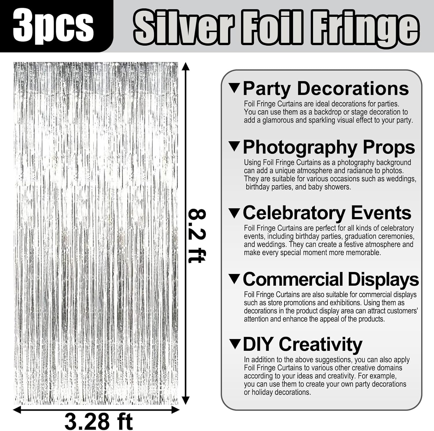 - Widely Applications:The foil fringe backdrop are wonderful finishing touch for any theme party such as birthday party, theme party, Halloween, Christmas, New Year Eve, bachelorette party, wedding, bridal shower, baby showers, graduations Etc.