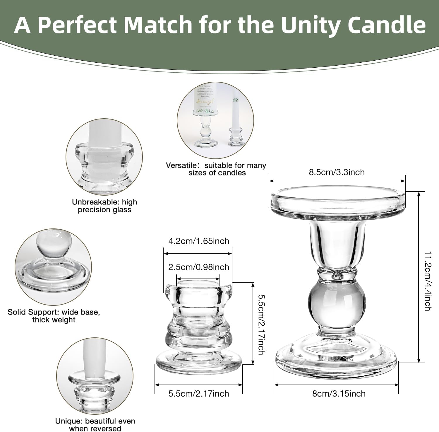 - ⭐Easy Matching Glass Candle Holders: Say goodbye to the hassle of finding the right size crystal candle holders. Our Wedding Centerpieces Set includes three matching glass candlestick holder that fit perfectly to the size of the decorative baptism candle. These taper candle holders ensure a secure and stable presentation, allowing you to focus on the meaning of your wedding bible ceremony without worry.