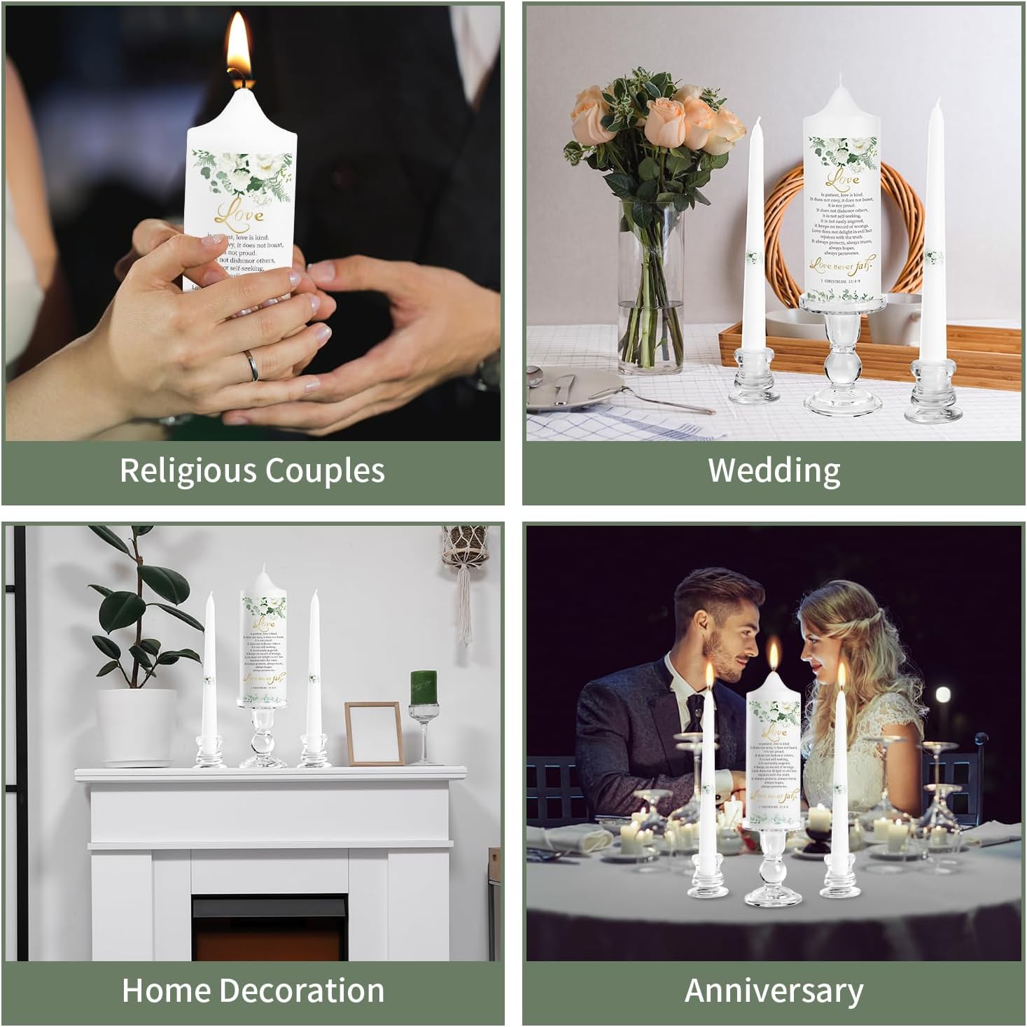 - 🏠LASTING IMPRESSION: The Unity Wedding Candles represent a deep connection between two people. By incorporating the culture of religious faith, this personalized meditation candles set embodies the true spirit of love. To solve the embarrassment of candle patterns falling off, our team uses pure handmade production with strong research and development, so that these church candles will not only be complement in wedding ceremonies, but also become precious souvenirs to be display at home.
