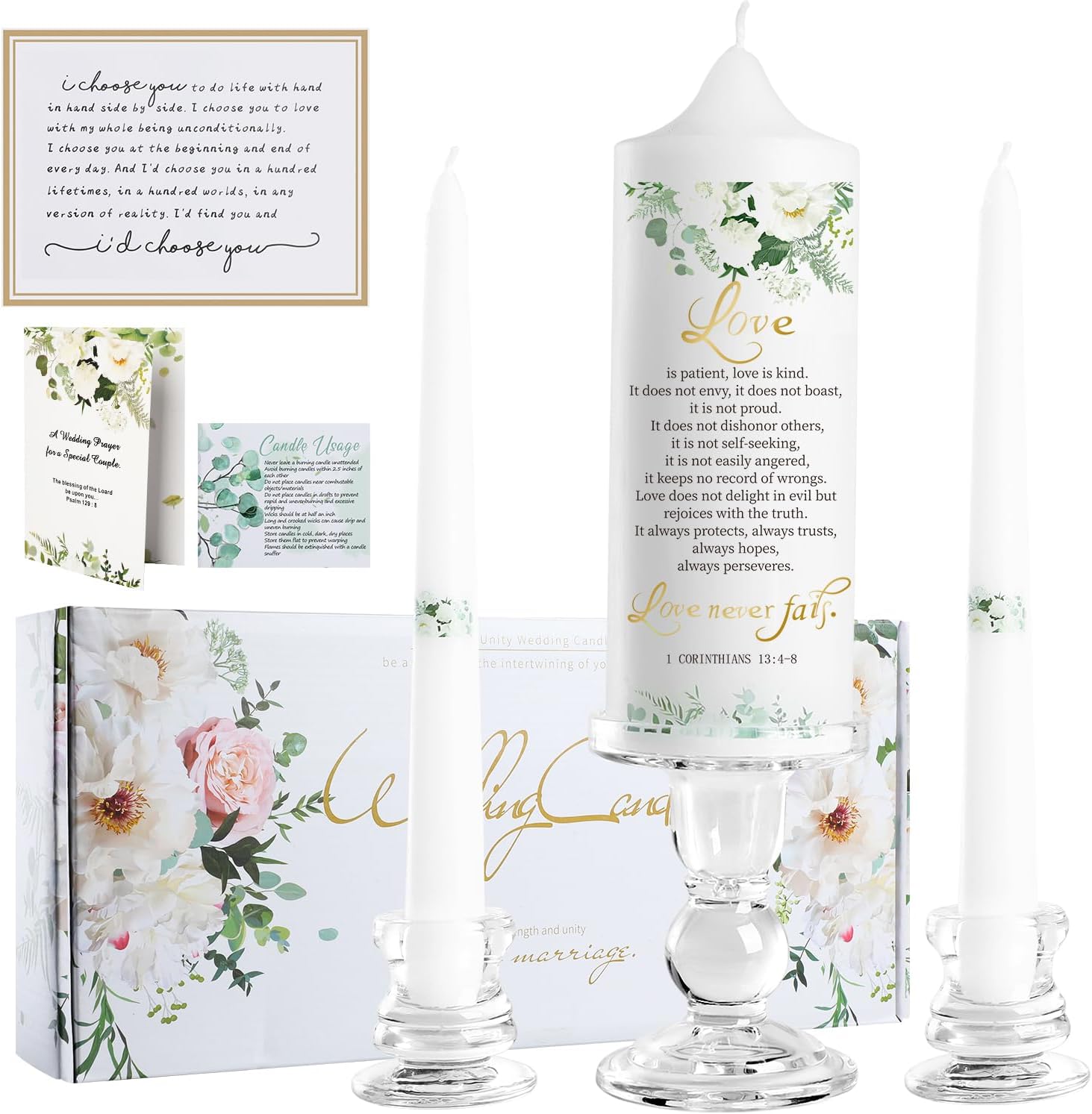 - 💕Meaningful Wedding Cards: Enhance the emotional depth of your wedding with the two wedding gift cards included in this candle set. The "I CHOOSE YOU" wedding cards for bride and groom have deep sentimental value and can be cherished as wall decor, a constant reminder of the vows you exchanged on your special day. In addition, the religious wedding shower card beautifully captures the essence of love in words derived from Psalm 129:8 of the Bible, reflecting the blessing of the couple's union.