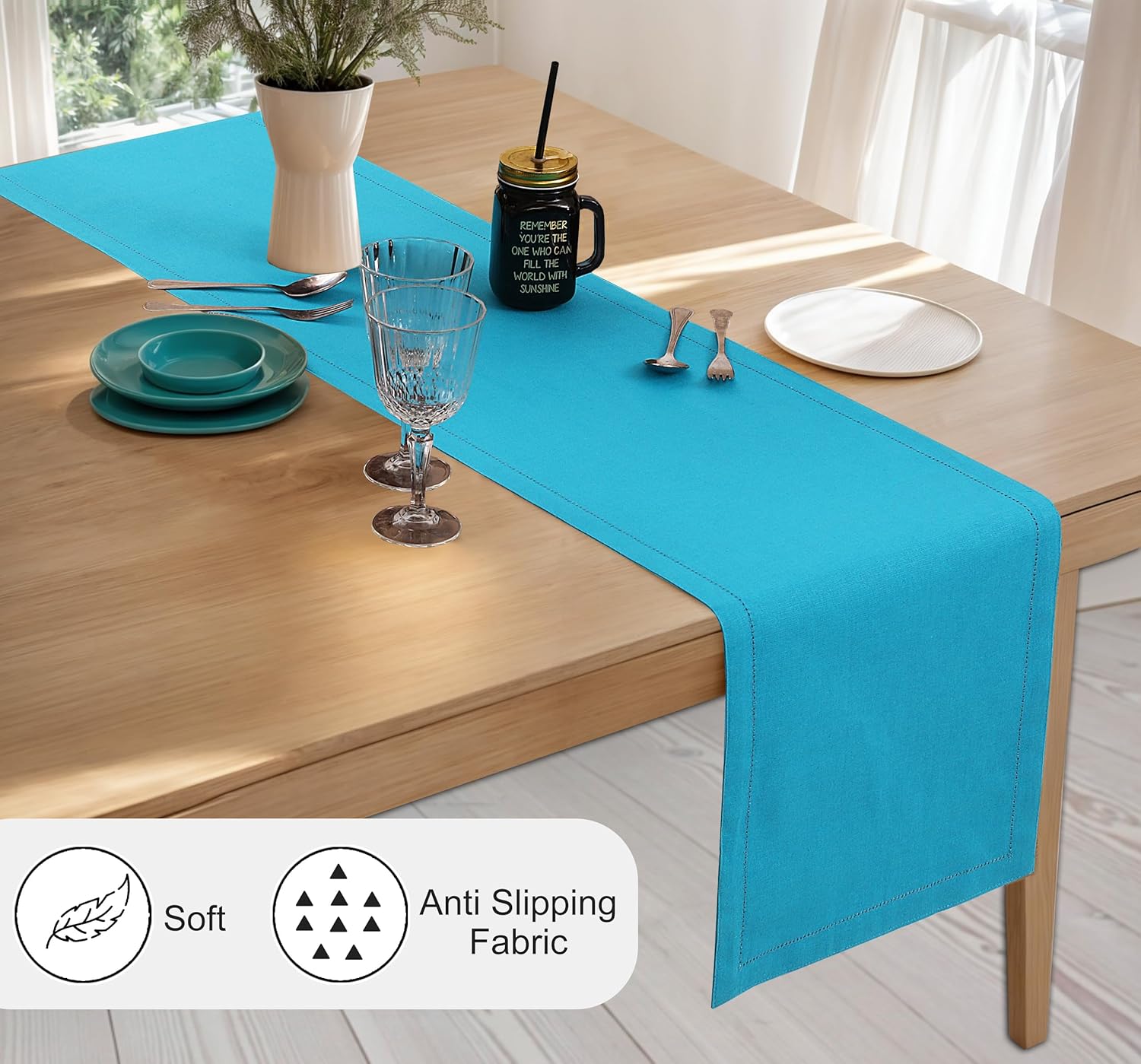 Ruvanti Linen Table Runner 72 Inches, Classic Hemstitch, Washable, Reusable, Non-Slipping, Stain Resistant- Perfect for Parties, Weddings, Dinners, Thanksgiving, Christmas, Indoor use – Blue