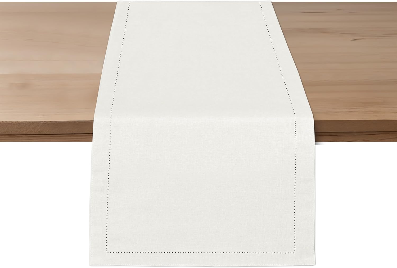Ruvanti Linen Table Runner 60 Inches, Classic Hemstitch, Washable, Reusable, Non-Slipping, Stain Resistant- Perfect for Parties, Weddings, Dinners, Thanksgiving, Christmas, Indoor use – Ivory