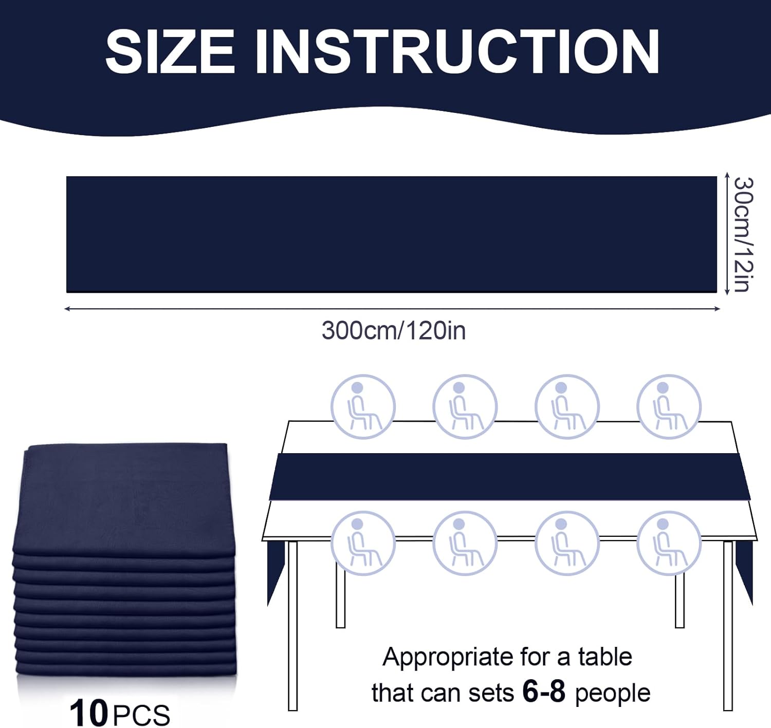 - PACKAGE CONTENTS:You will get 10 pieces of chiffon tablecloths, single tablecloth size: 30 x 300cm/12 x 120in. Each tablecloth is equipped with 2 white ribbons, which can be used to tie the sides to fix, the quantity is enough for wedding banquet and various parties, our tablecloths are suitable for tables with 6-8 seats