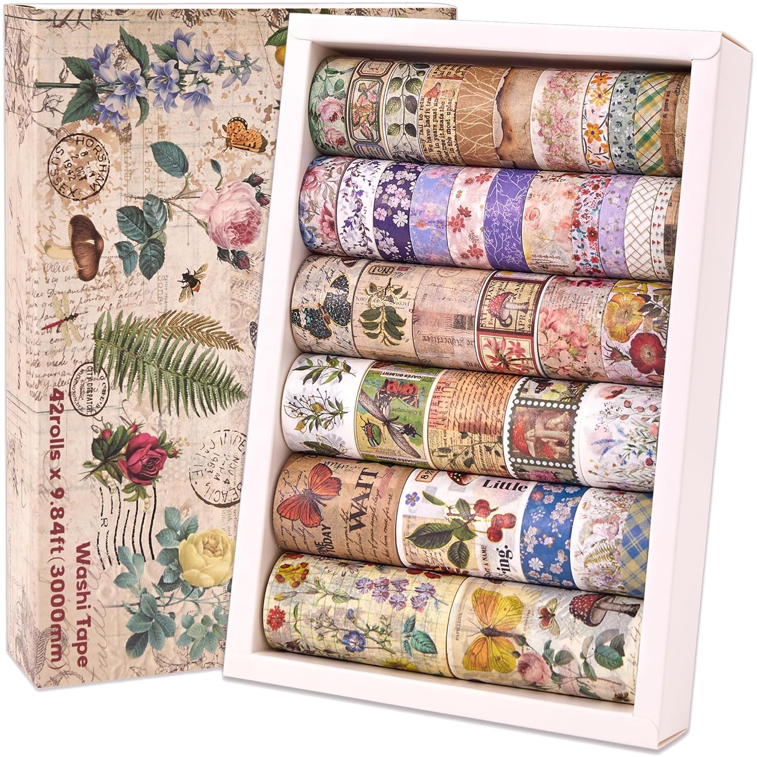 - GREAT GIFT: We pack these vintage washi tapes in a vintage box that can be used as a gift for friends, classmates or your daughter, junk diary lover, It's a box full fun.