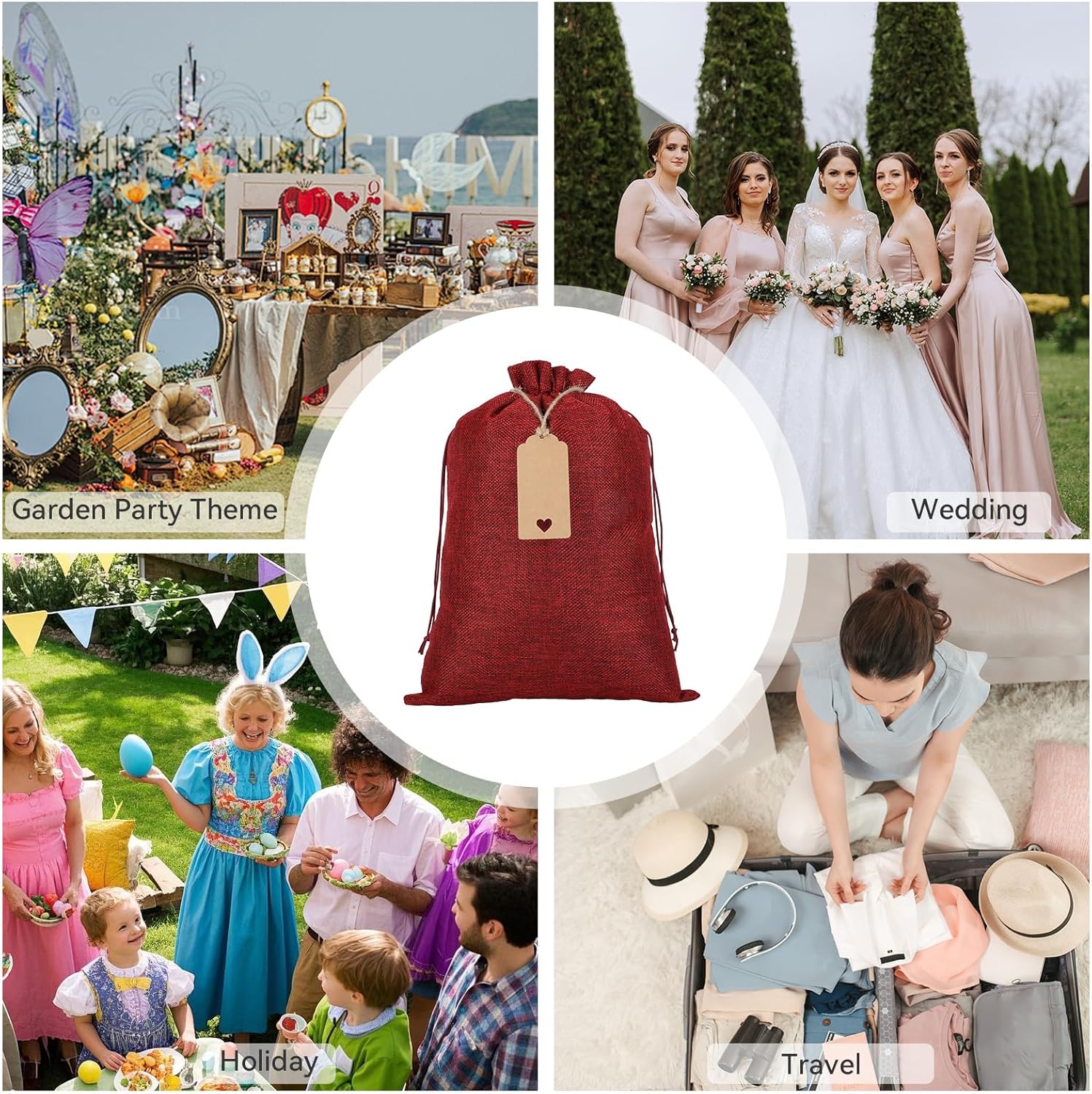 Tapleap Burlap Bags with Drawstring - 10Pcs 10x14 Red Gift Sacks for Wrapping Halloween Favors, Seeds, Root Ball, For Birthday, Wedding, Rustic Themed Party or Household Use