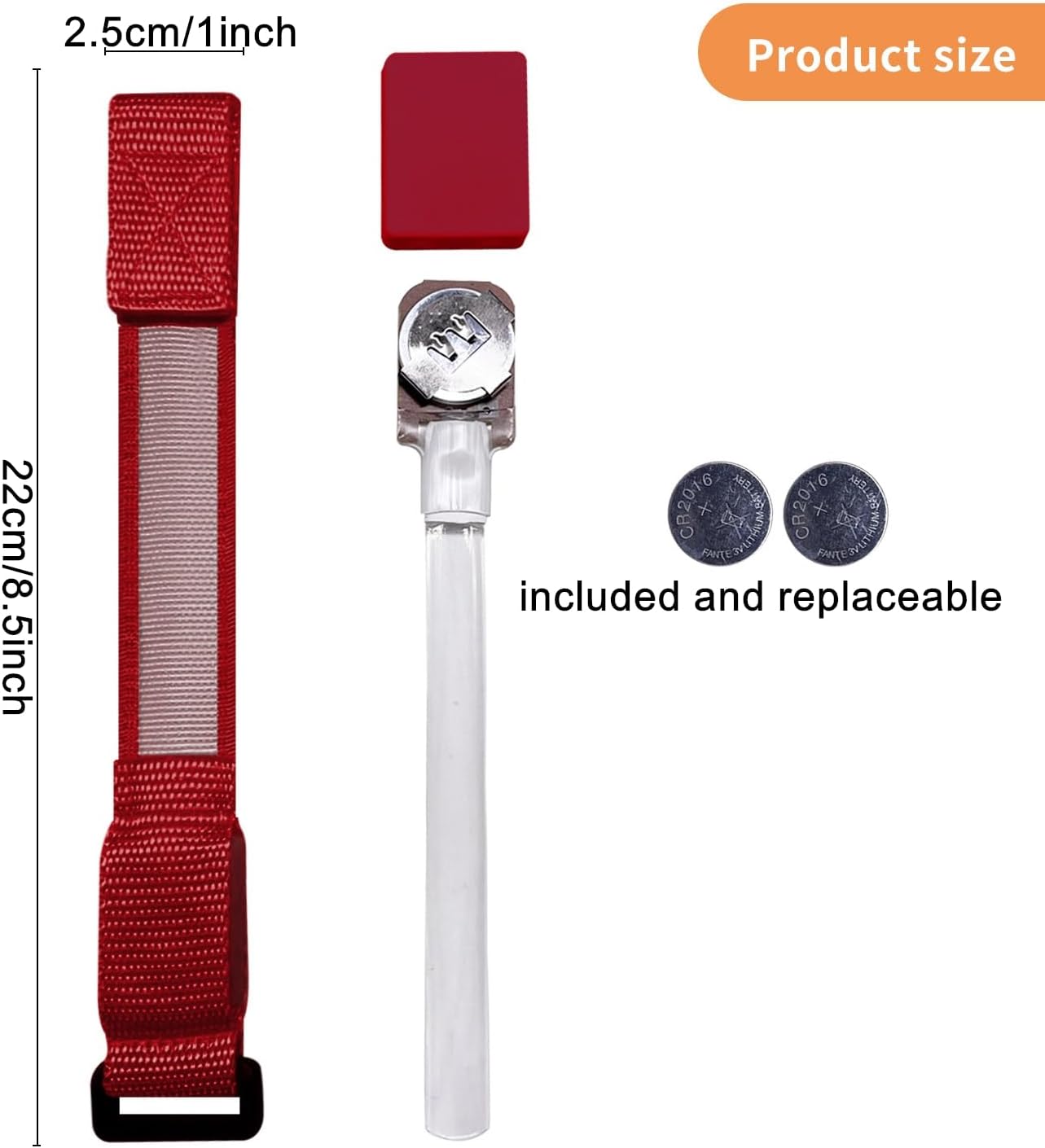 - It is powered by 2 CR2032 batteries, which are included and pre-installed. The batteries are replaceable, and the nylon wristband can be cleaned by removing the battery pack, making it reusable.