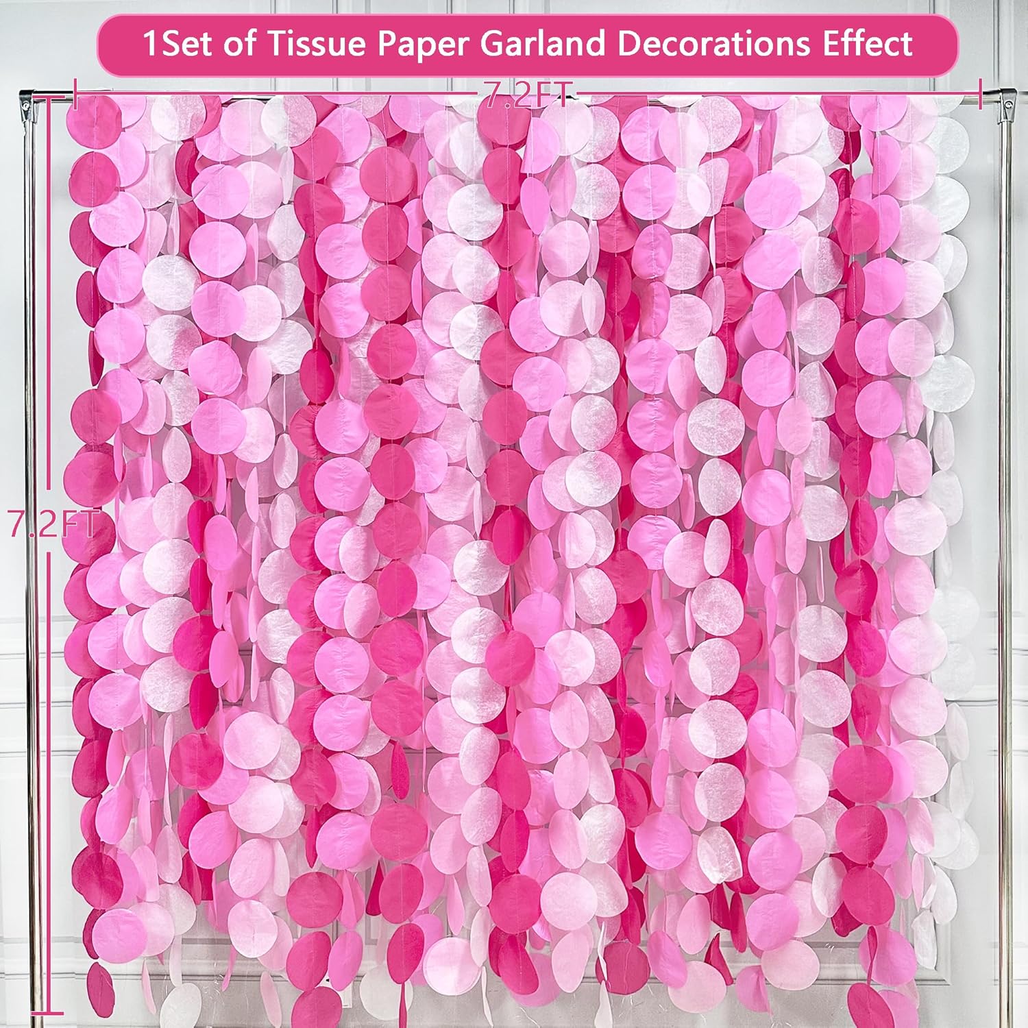 - ENVIRONMENTAL MATERIAL-Our rose pink big circle dot streamer garland are made of high quality tissue paper,carefully hand-made and machine-sewn together with thread.durable and reusable.Unroll & unwrap the tissue paper garland carefully. Due to delicate nature of thread, may tangle.