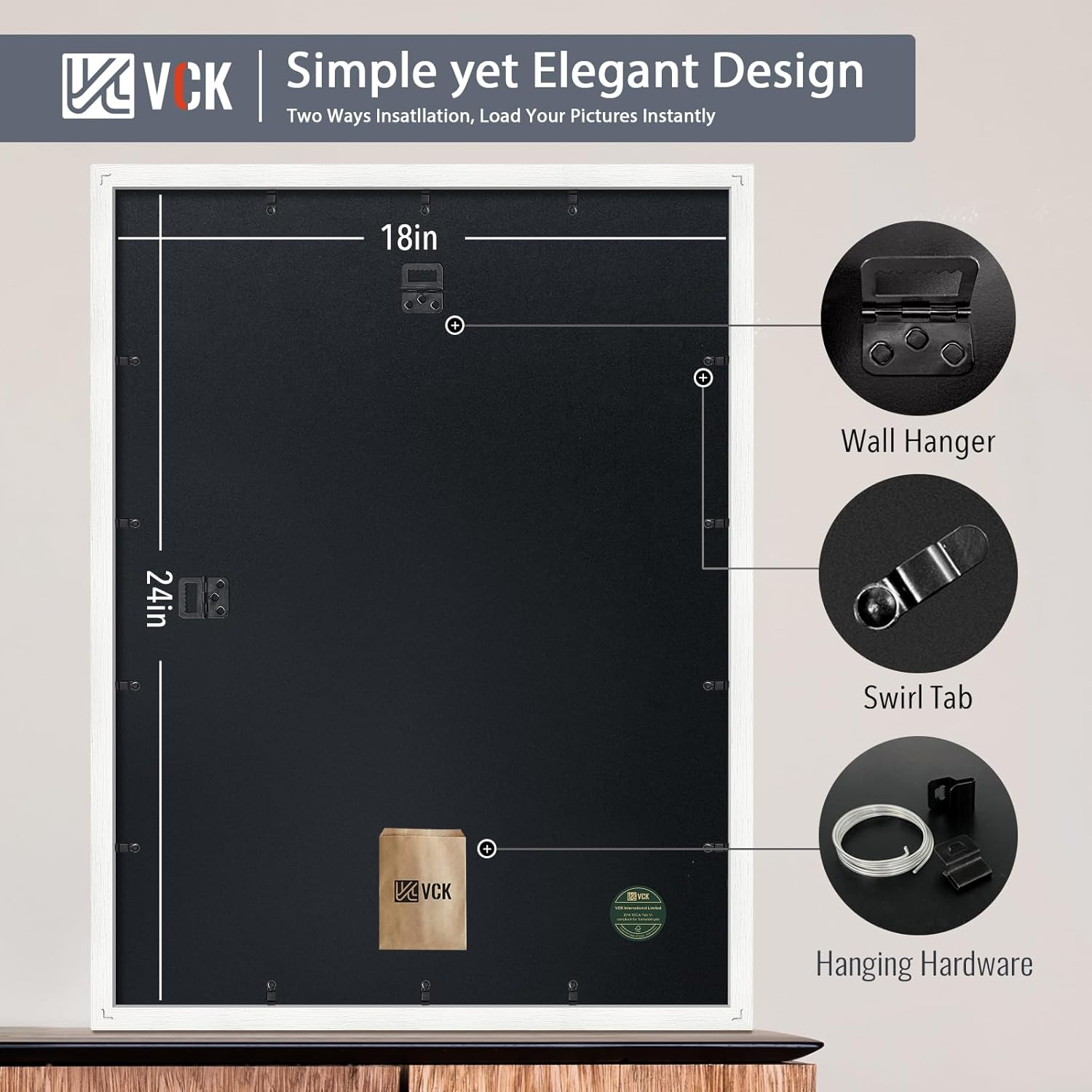 VCK 18x24 Frame 2 Pack, Exclusive Textured Solid Wood Poster Frame, Display Picture 16x20 with Mat or 18x24 without Mat, White
